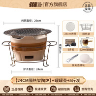 探险者(TAN XIAN ZHE)围炉煮茶套装烧烤炉室内煮茶炉陶泥炉户外炭烤炉围炉煮茶器具 24CM隔热架陶炉+罐罐壶+5斤炭