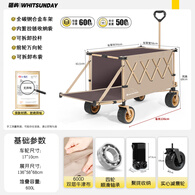 疆屿户外露营折叠小推车旅行营地野营野餐摆摊儿童可躺野餐聚拢车 卡其【聚拢MAX款】加大加深车身
