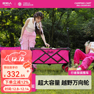 狮奥利兴儿童可坐露营车折叠推车聚拢型营地车户外野餐野营推车粉色带桌板 150L 有刹车 粉色坦克轮