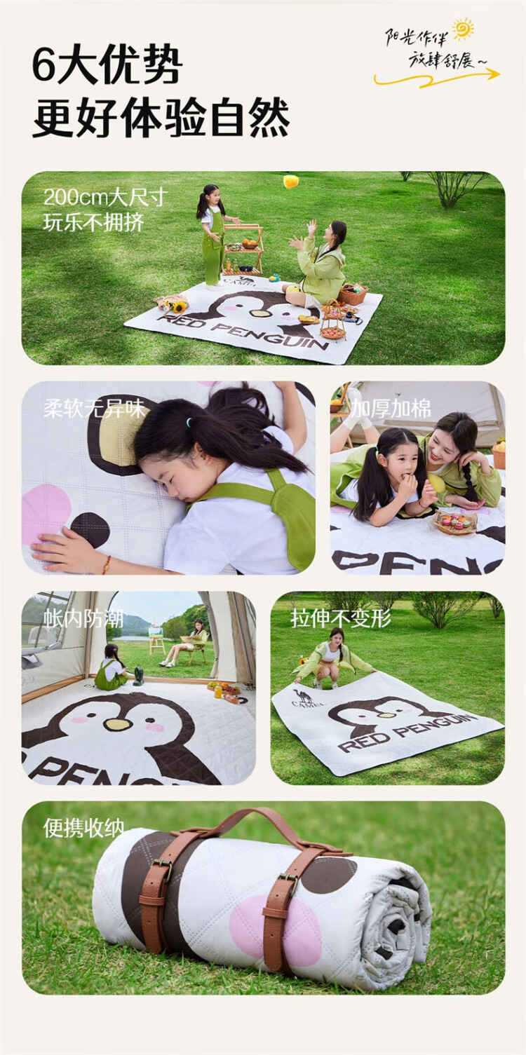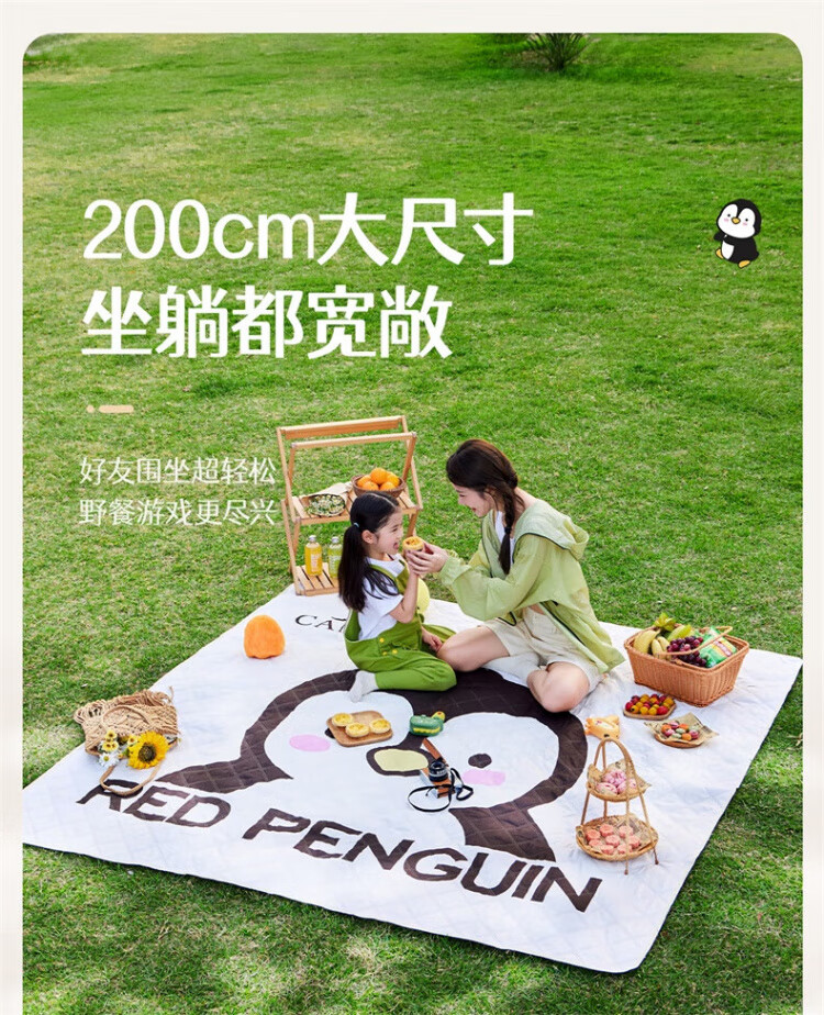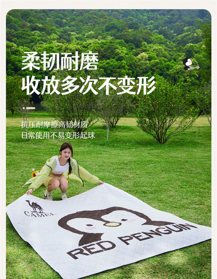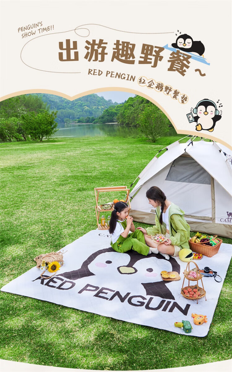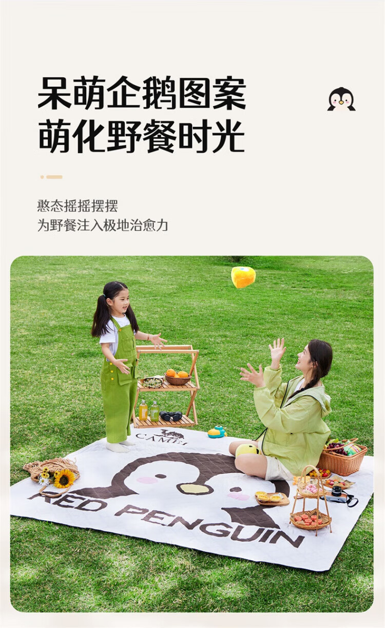 骆驼(CAMEL)x红企鹅 野餐垫户外露营帐篷防潮垫郊游野炊防坐垫地垫地布 200*200cm 米白 174CALP644
