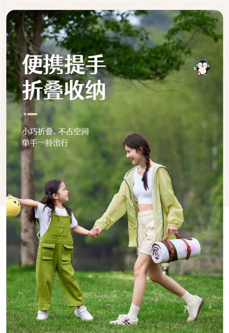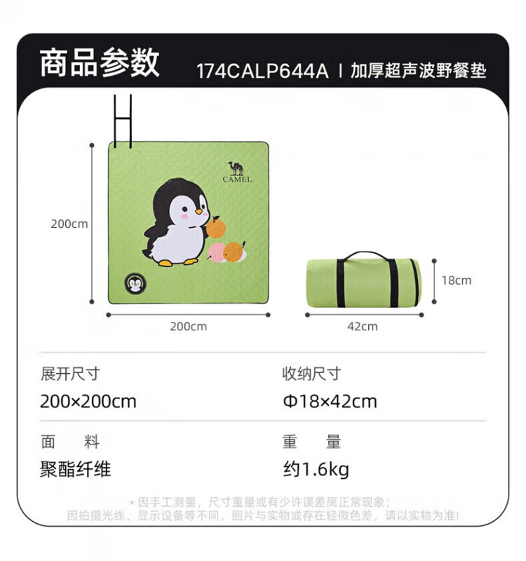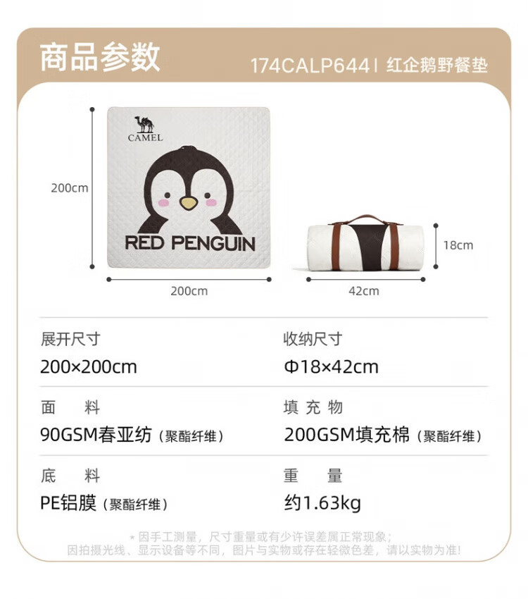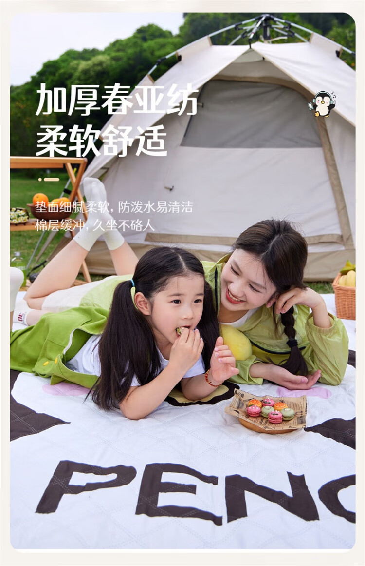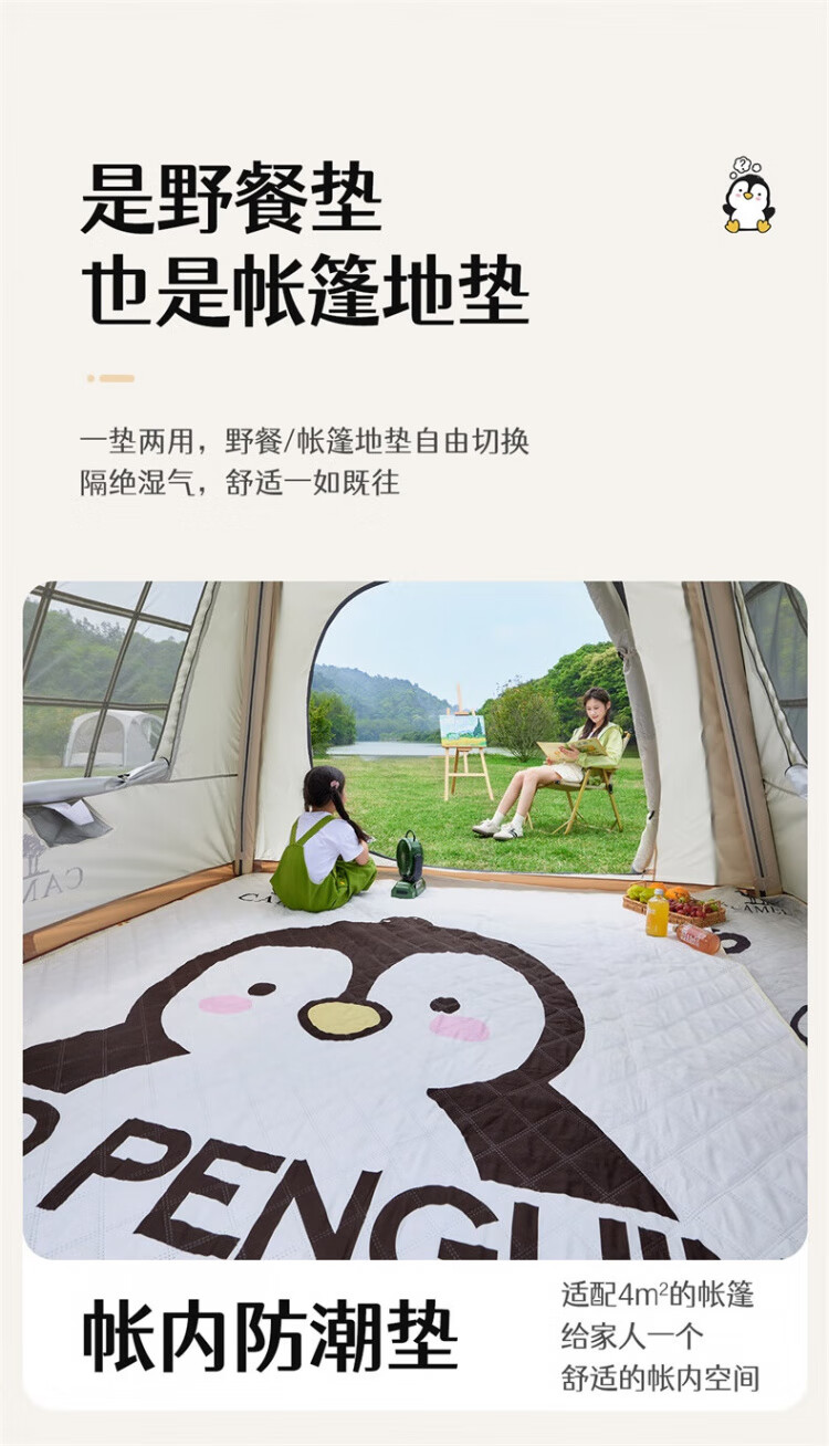 骆驼(CAMEL)x红企鹅 野餐垫户外露营帐篷防潮垫郊游野炊防坐垫地垫地布 200*200cm 米白 174CALP644