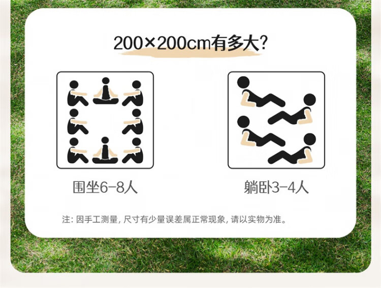 艾格辰野餐垫野外郊游防潮垫子户外折叠便携防水加厚野炊草坪布露营装备 小黄格大号[2.0米*2.0米]