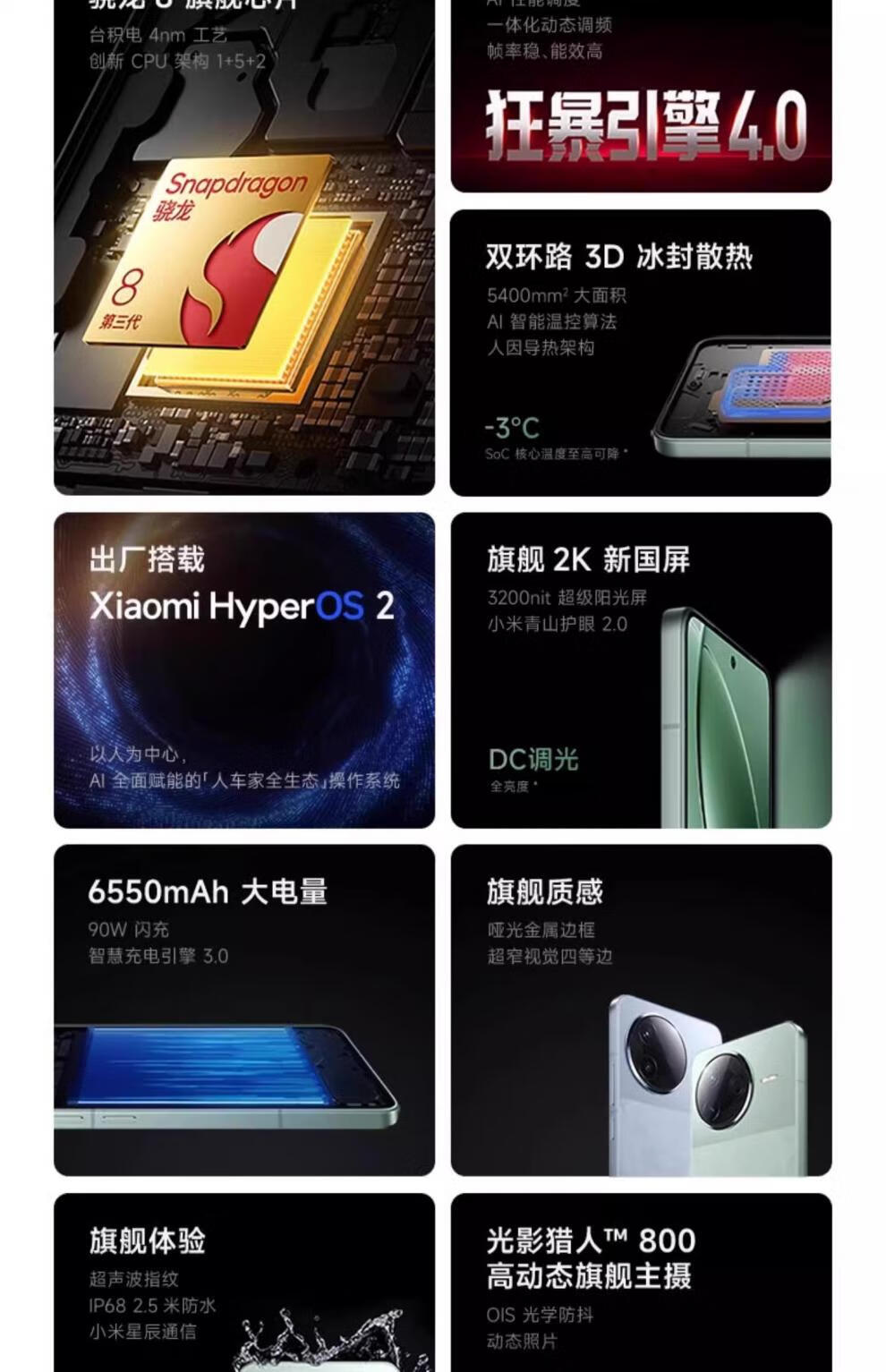 小米 红米 Redmi K80 全新未拆封未激活 2K屏 6550mAh大电池 5G 手机 (红米 K80)山峦青 12GB+256GB 官方标配