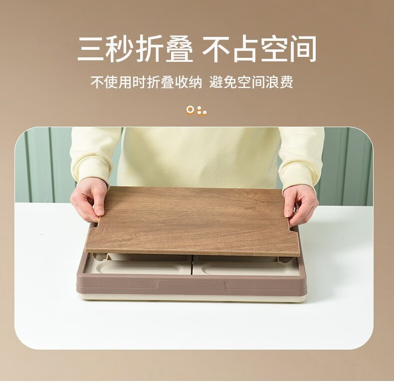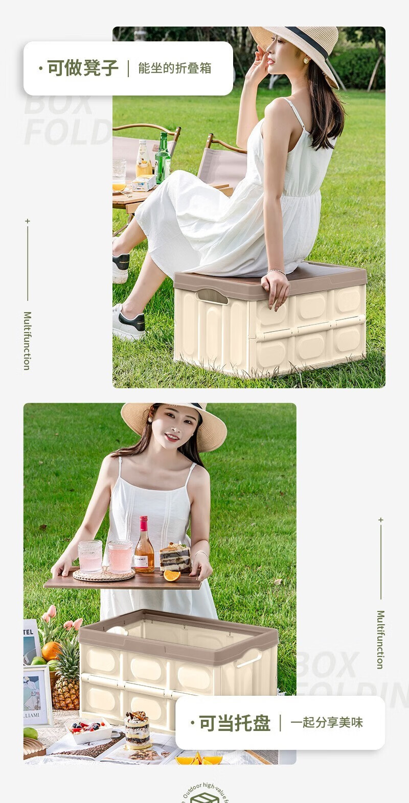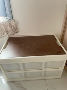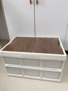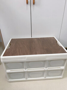 夏天到了可以和朋友们出去游玩了,这个收纳箱是折叠的,平时不用放在车里面也不占地方,用的时候打开里面空间挺大的,上面有个木质的面,出去游玩可以当个桌子使用很方便呢