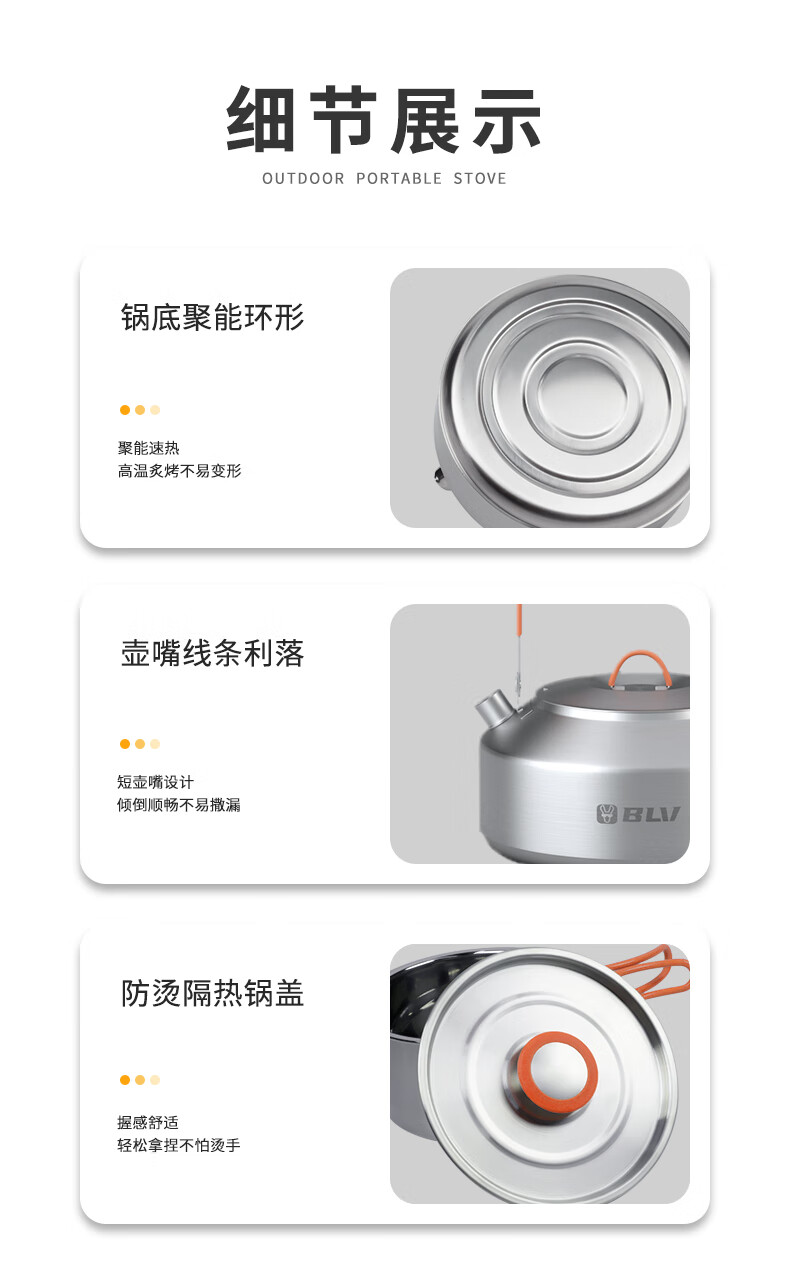 岛奇(Daoqi)岛奇户外锅具套装炊具露营野炊装备便携卡式炉野餐锅304不锈钢 304钢水壶
