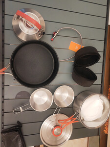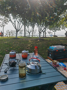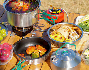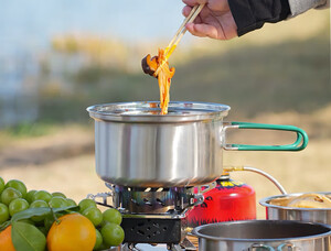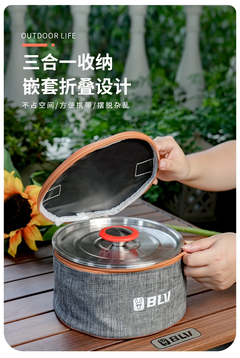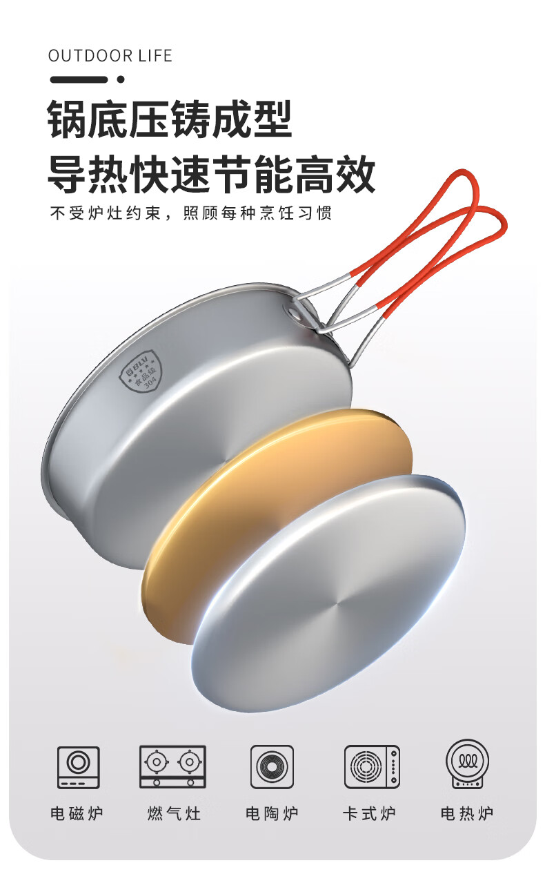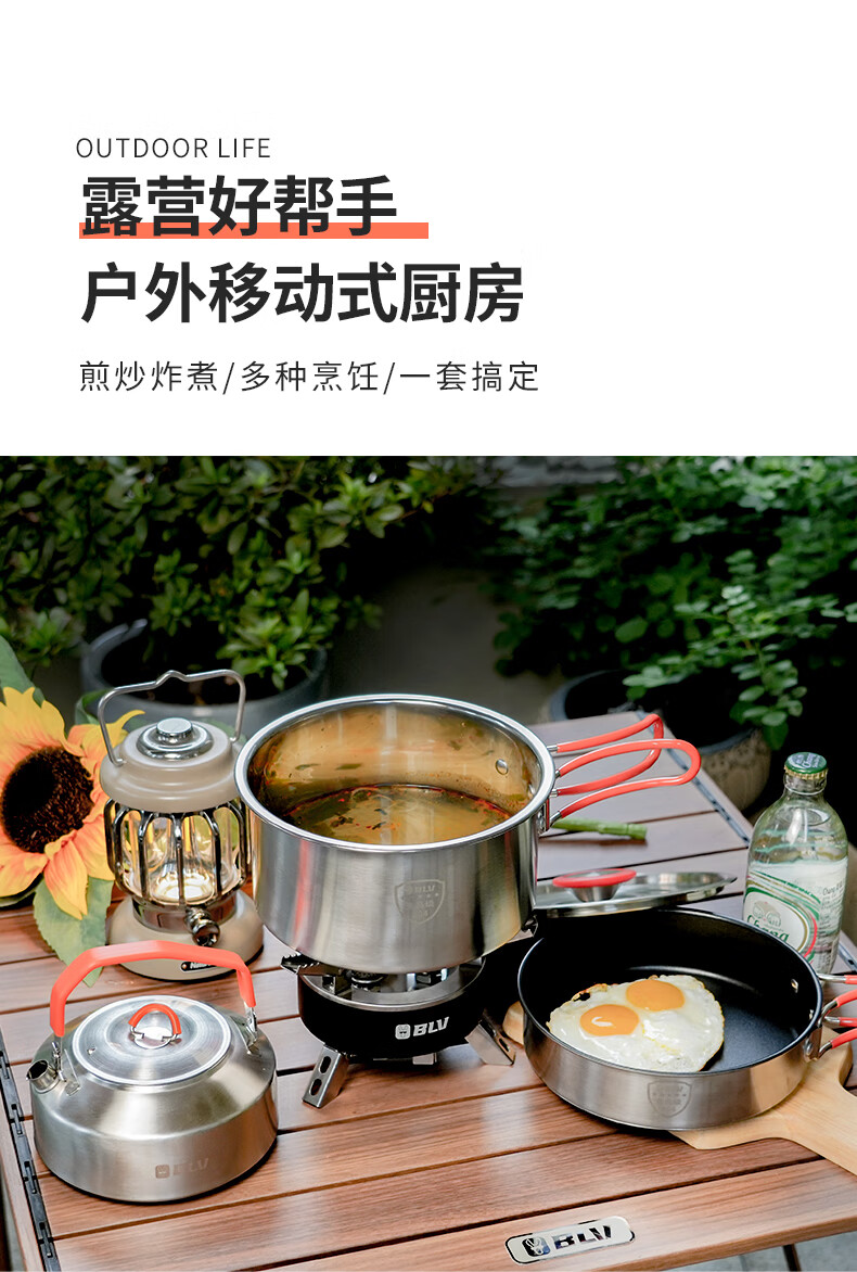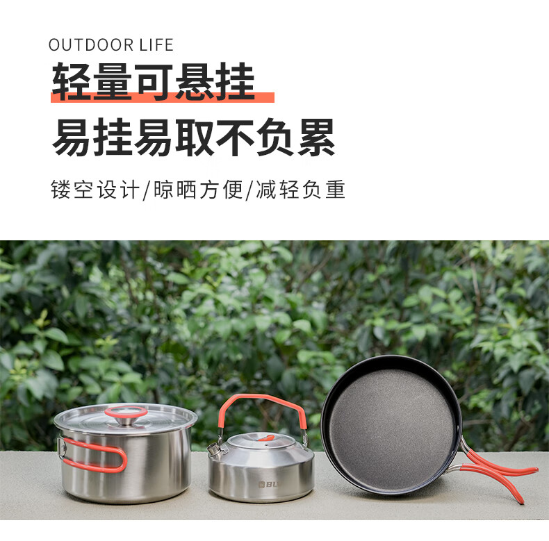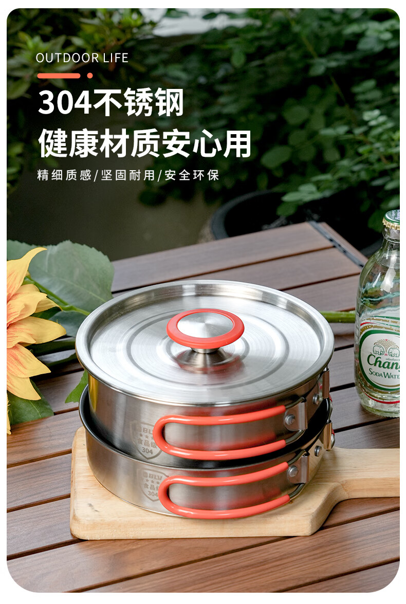 设计也很贴心,锅柄可以折叠,收纳时更省空间,而且握着不烫手。一套里面煎锅、煮锅、小奶锅都齐了,两个人露营煮个火锅、煎个牛排、煮碗热汤完全够用,清洗起来也方便,用湿巾擦一下基本就干净了。