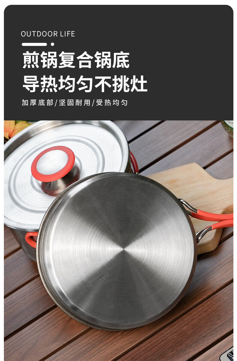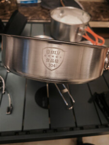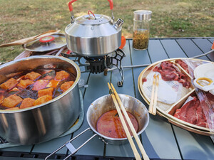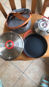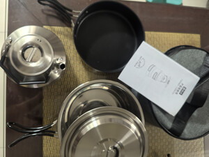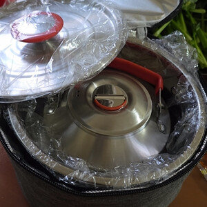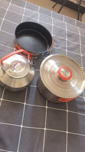 比较了好几家选择了这个,果然不负期待,材质是不锈钢的,比普通铝合金的要健康多了,也很轻便,还配了收纳包! 锅看着不大,但是吃火锅三四个人轻松拿捏! 烧水壶也很派上用场,泡泡茶,喝喝热水!