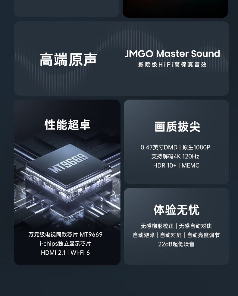 坚果(JMGO)J10S Pro投影仪 家用投影机高清高亮 智能投影卧室客厅大庭影院(0.47DMD芯片 1200CVIA)