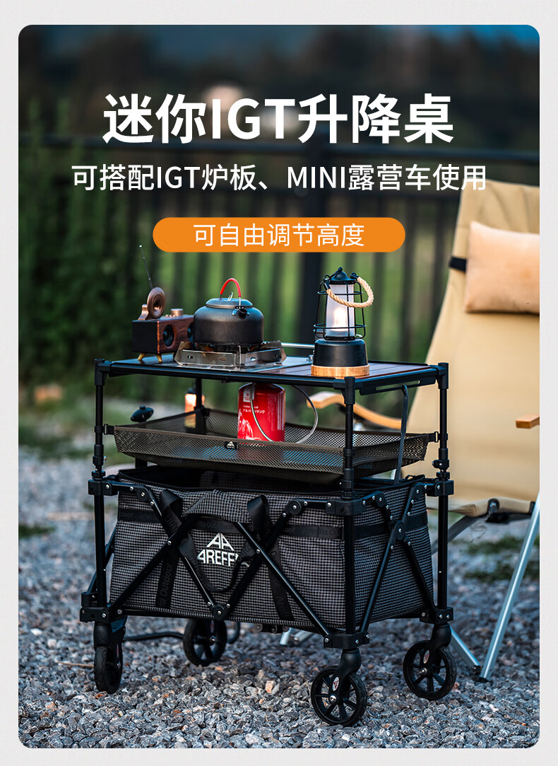AREFFA户外野餐升降桌子折叠桌轻量多功能小桌子铝合金IGT桌露营升降 迷你IGT升降桌