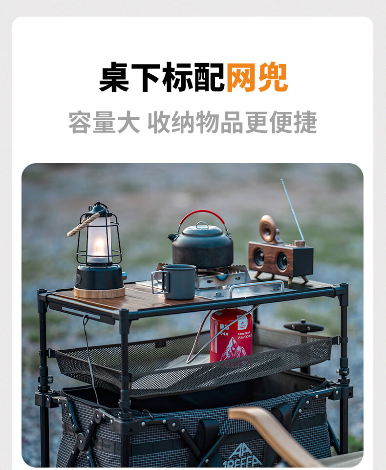 AREFFAAreffa户外露营桌置物架野营方便实用便携精致收纳野餐台侧置物架 卡其色 台侧置物架