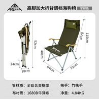 AREFFA高脚加大可调节海狗椅折叠椅露营野外新款高端航空铝户外大号椅子 军绿加大高脚四档【送头枕+收纳袋+终身保修】