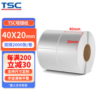 TSC打印机适用 不干胶条码纸 哑银打印纸 PET PVC 亚银纸 不干胶亚银二维码标签 40mm*20mm*2000张两排