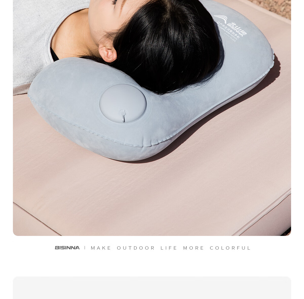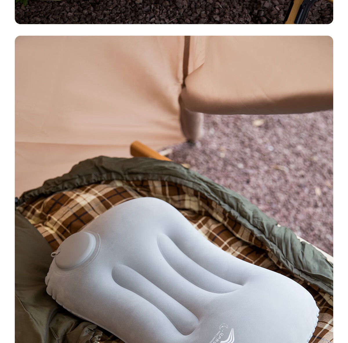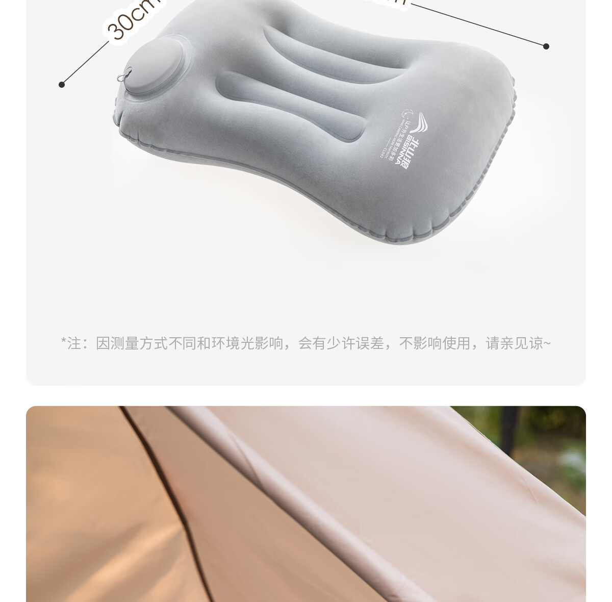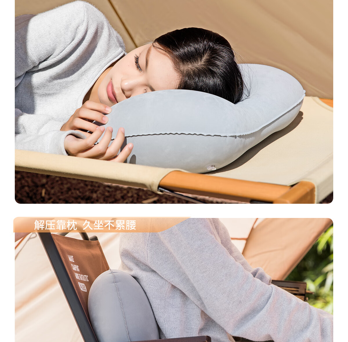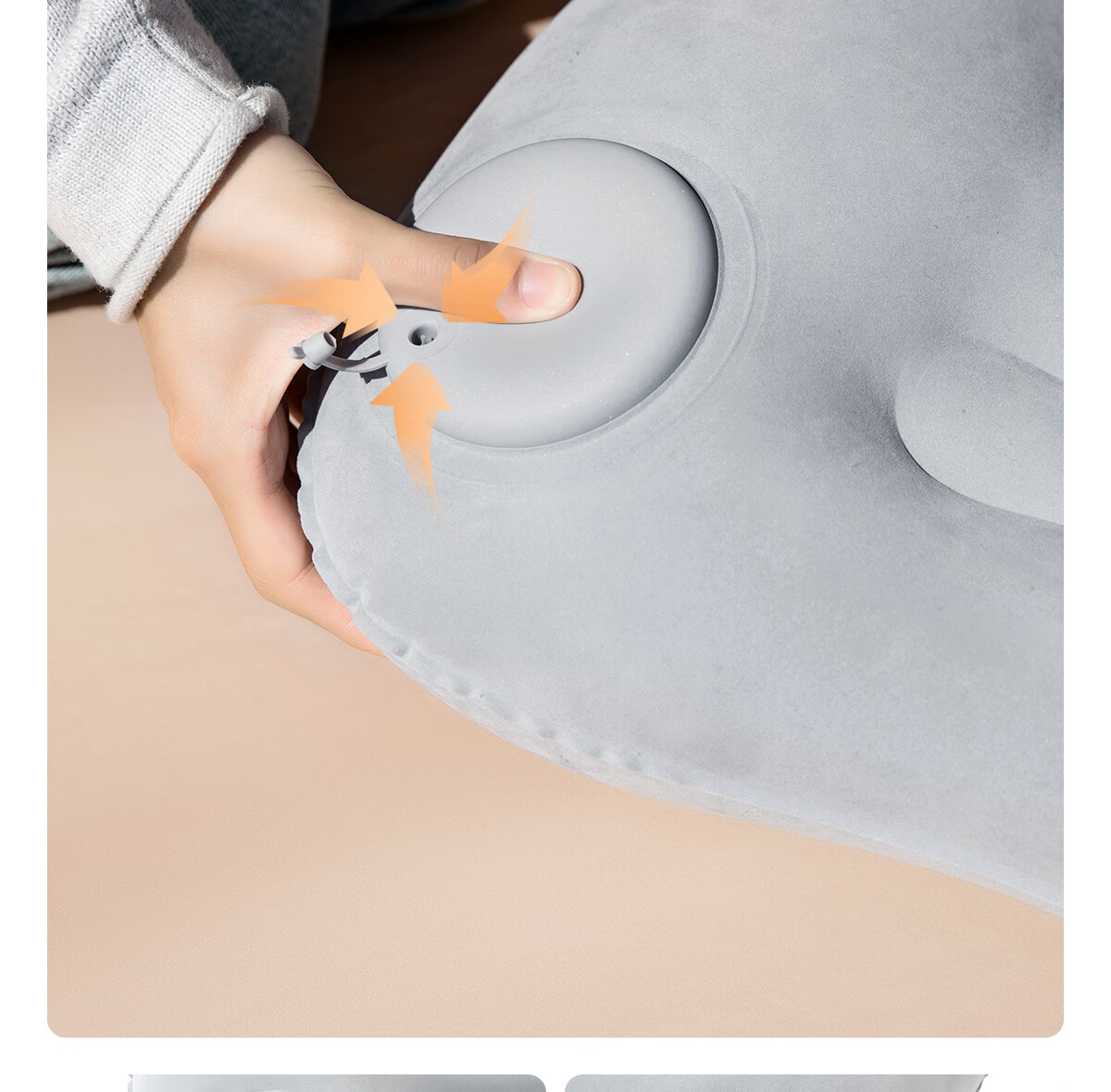北极狼(BeiJiLang)充气枕头露营户外旅行枕按压便携腰枕腰靠坐垫飞机旅行神器午睡枕 外充气植绒睡眠枕【奶灰】