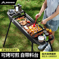 北山狼户外烧烤炉子家用烧烤架便携折叠烤肉炉2025新款大碳烤炉商用工具 基础款-陨石黑N1【带烤网】