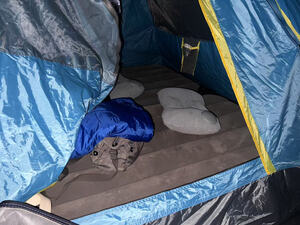 在帐篷里面用的,很暖和,超级舒服,里面的料子很软乎,然后外面也一样,躺进去就整个人一会就暖起来了