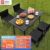 顺优露营桌椅户外折叠桌子蛋卷桌便携野餐装备用品椅子套装野餐桌椅 120cm【长桌+4椅】石墨黑