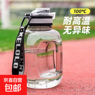 旅行装备水杯户外运动耐高温便携式吸管大号水壶带刻度健身壶 1.2L白色直饮杯