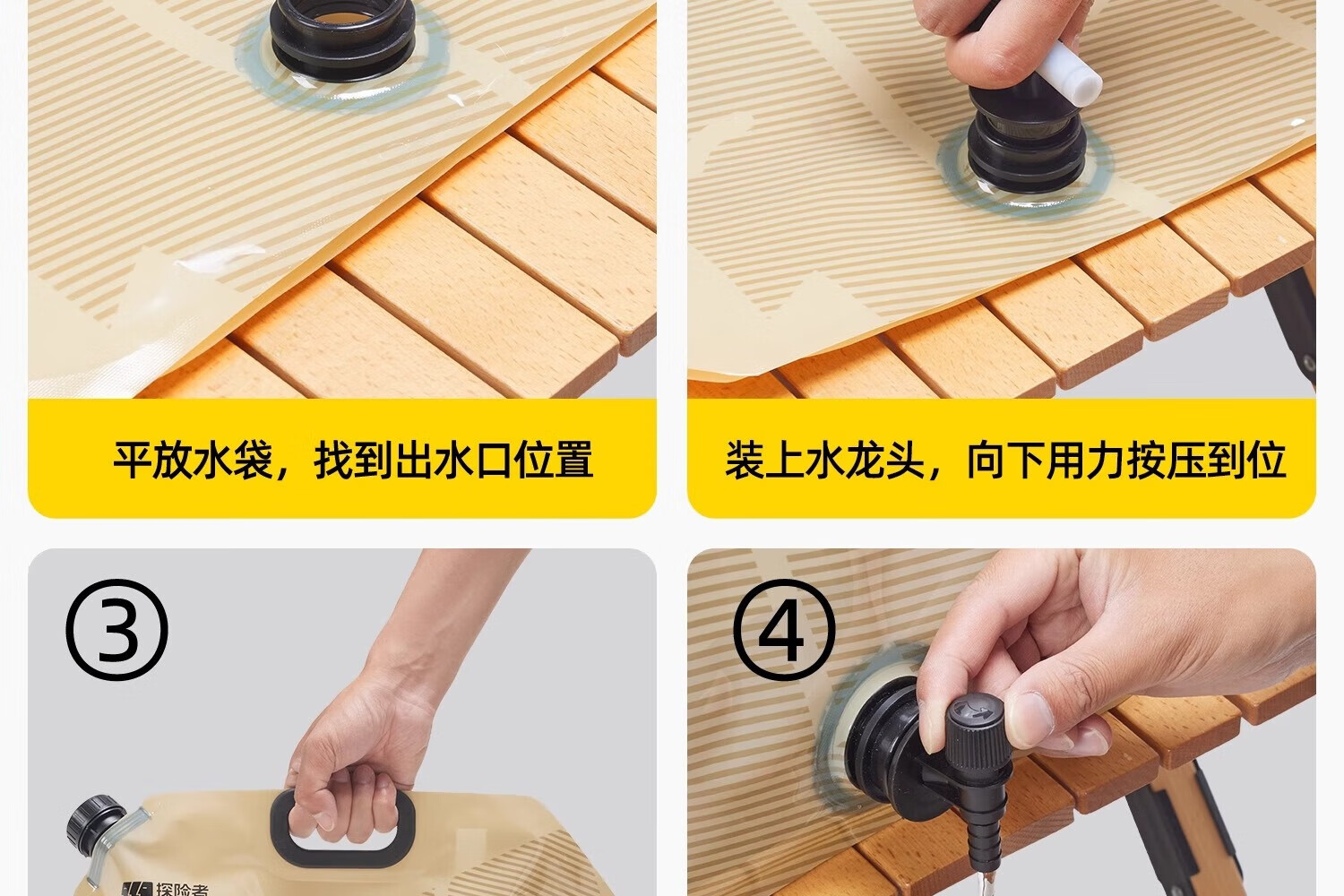 探险者户外水袋便携式大容量加厚水袋折叠水桶储水桶露营野餐装备带龙头 卡其储水袋12L-带龙头