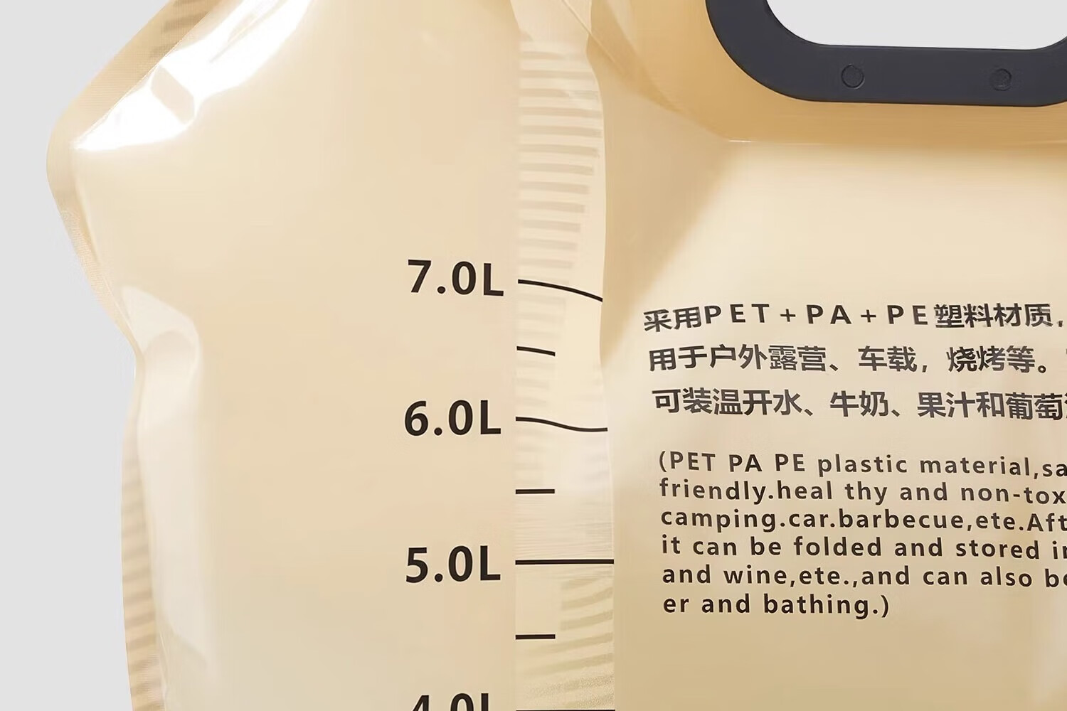 这款探险者户外水袋材质安全(PET+PA+PP),密封设计适配户外场景,容量实用。标签标注清晰合规,便携易收纳,不过塑料质感略普通,日常徒步、露营补水很方便,性价比不错。