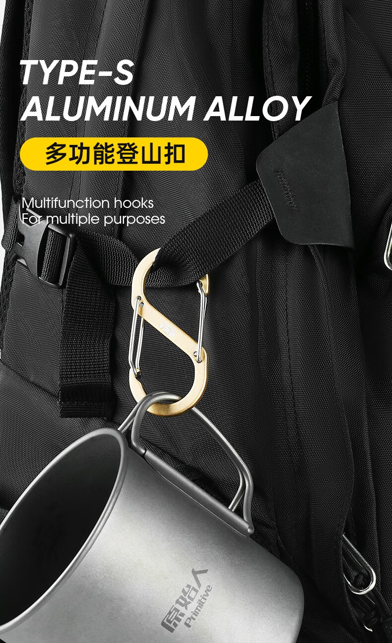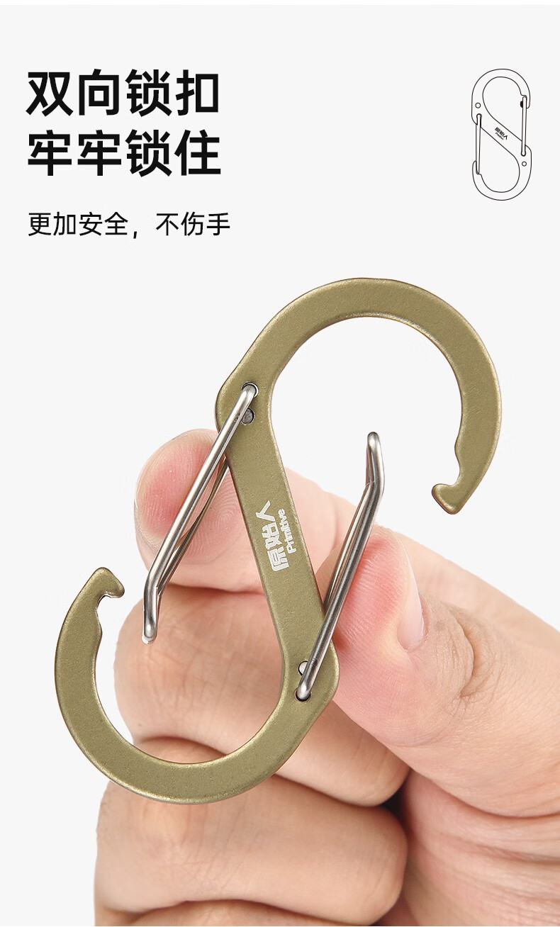 原始人户外登山扣S型安全扣挂钩钥匙挂扣多功能铝合金爬山8字挂扣 S型黑色【两只装】