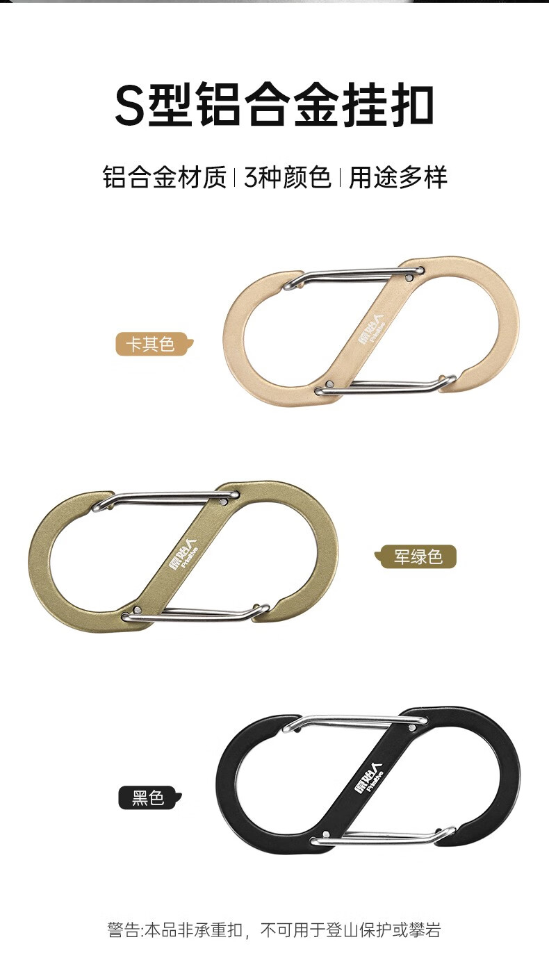智宙铝合金S扣8字形登山扣钥匙扣八字扣旅行背包外挂钩帽子连接 混色-中号3个