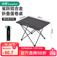 山扉山扉轻量铝合金折叠蛋卷桌碳钢露营便携式野餐装备休闲户外桌椅 【中号】曜石黑·雀跃折叠桌 带收纳包