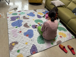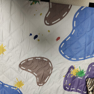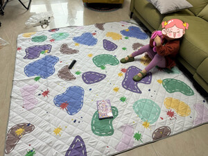 垫子很厚实,宝宝在上面玩玩具什么的很方便,带出去野餐也足够大,放水果零食都很百搭!颜色很卡通,舒服的配色,防水防尘,清理很方便。 质量非常好!方便收纳!比较厚实 坐着躺着都很舒服!这家的品质真的没话说!推荐购买。