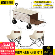 探险者露营车户外聚拢推车大容量快递车野餐车摆摊营地车便携野营旅行车 银月白【后开越野款+桌板+月亮椅*2】