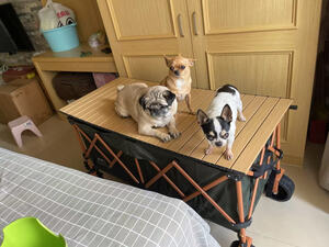 这是这次618活动最最惊艳的收货,一直都在搜索“高大”的营地车(家里的高背椅要约95公分的长度…家里“人口”又多(看图就知道了))…之前买过一个,不够大(主要是没经验,只看了车的大小,没有关注车内兜的大小)最终“忐忑”地等到了开封的时候,不仅满足了我的实用性,车的外观设计,车架等材料的坚固、整体颜色搭配…都很完美(我个人觉得),拆装很便捷,店家服务也很实在,内外包装完好无损,想要大,一点,好一点的营地车就可以到她家,再就是要配齐桌板和固定物品的网兜,非常实用和必要。