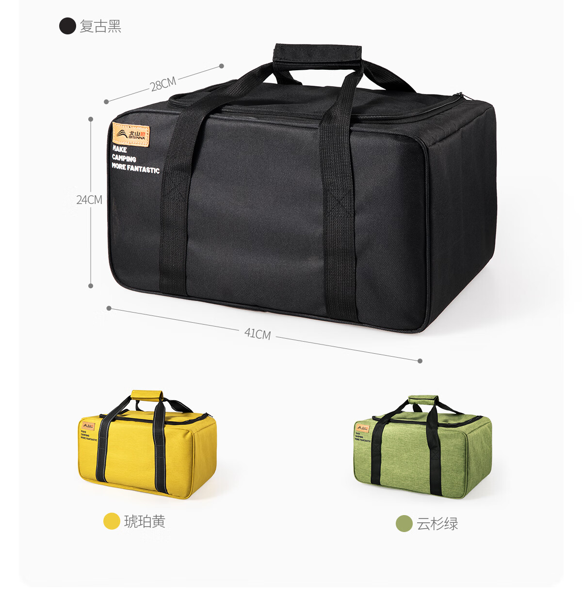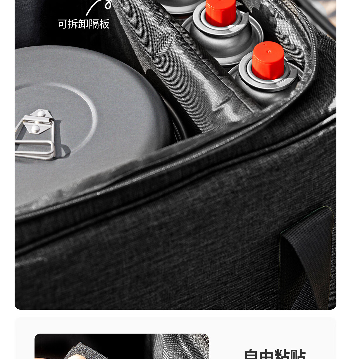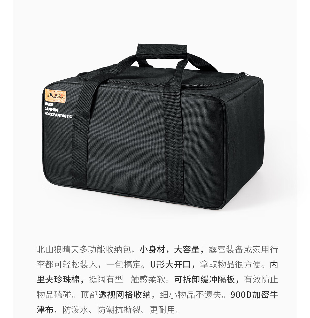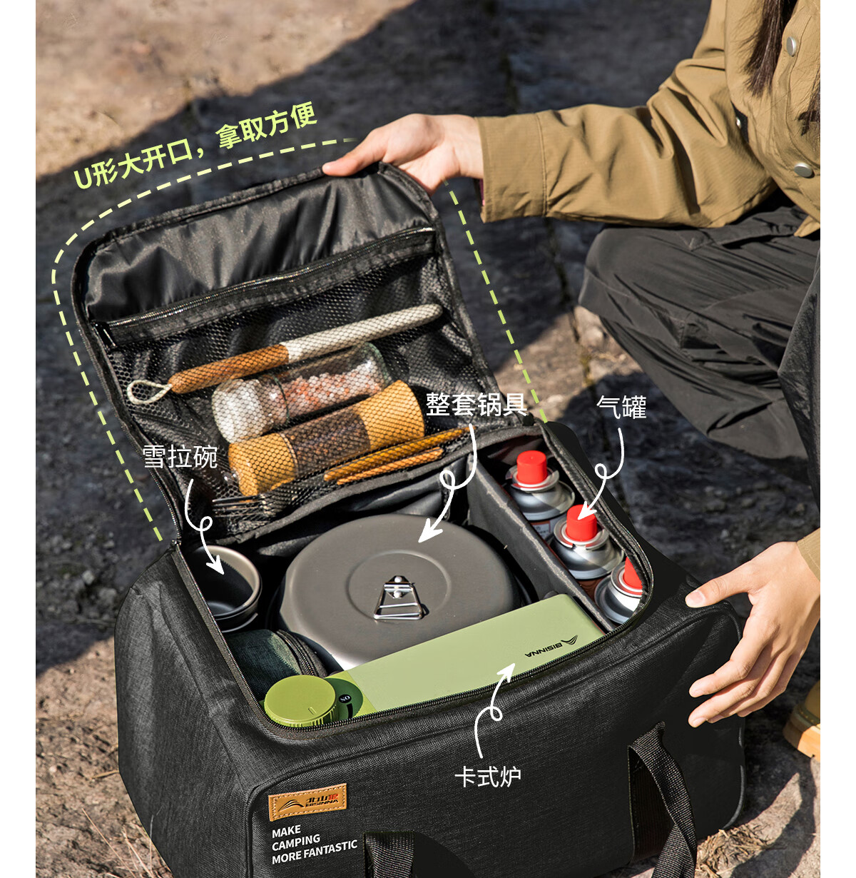 北山狼户外露营收纳包多功能便携式餐具套锅野餐包大容量手提包 复古黑【自带隔层】