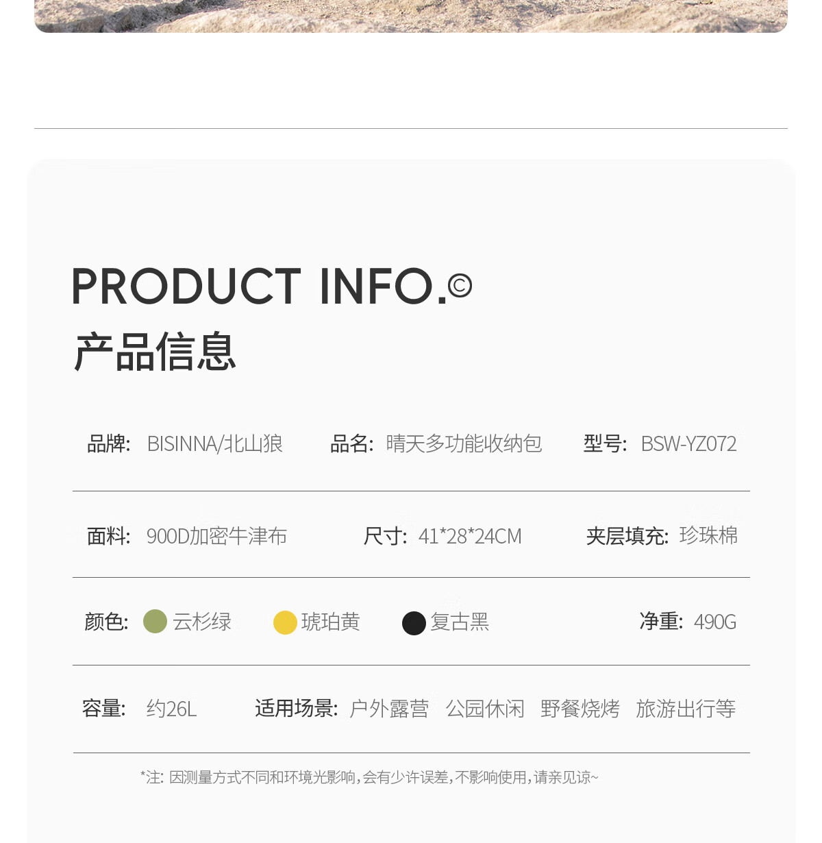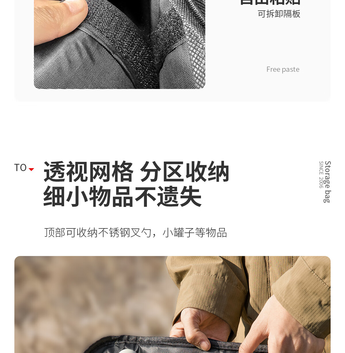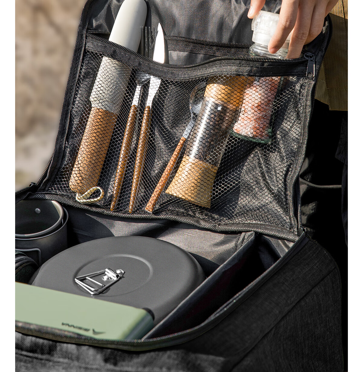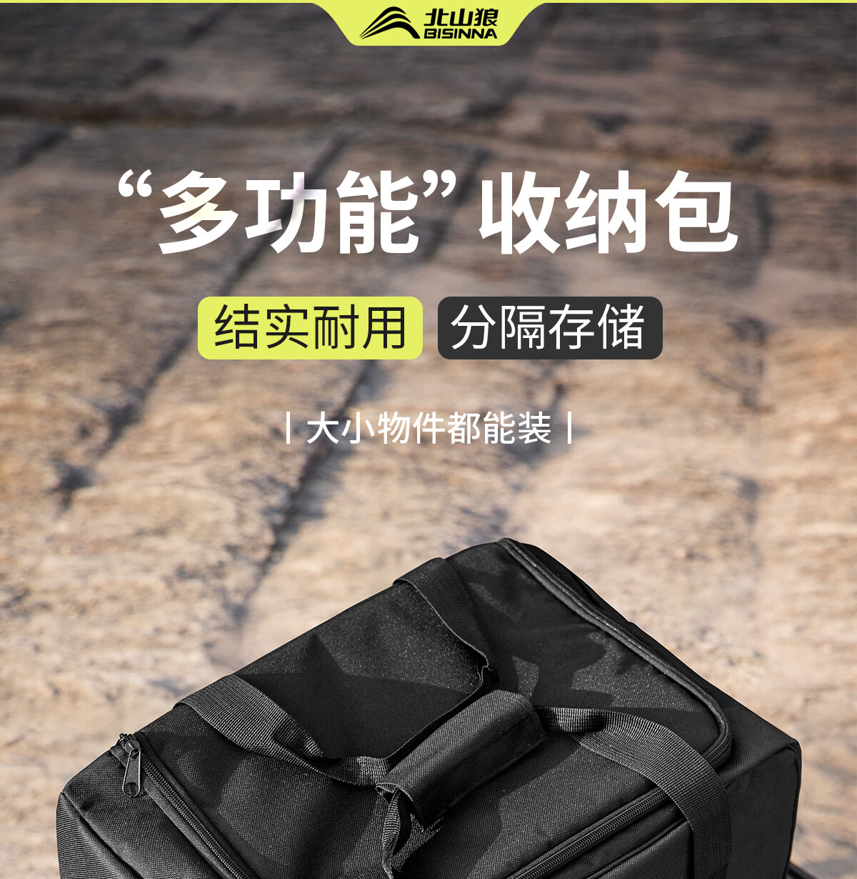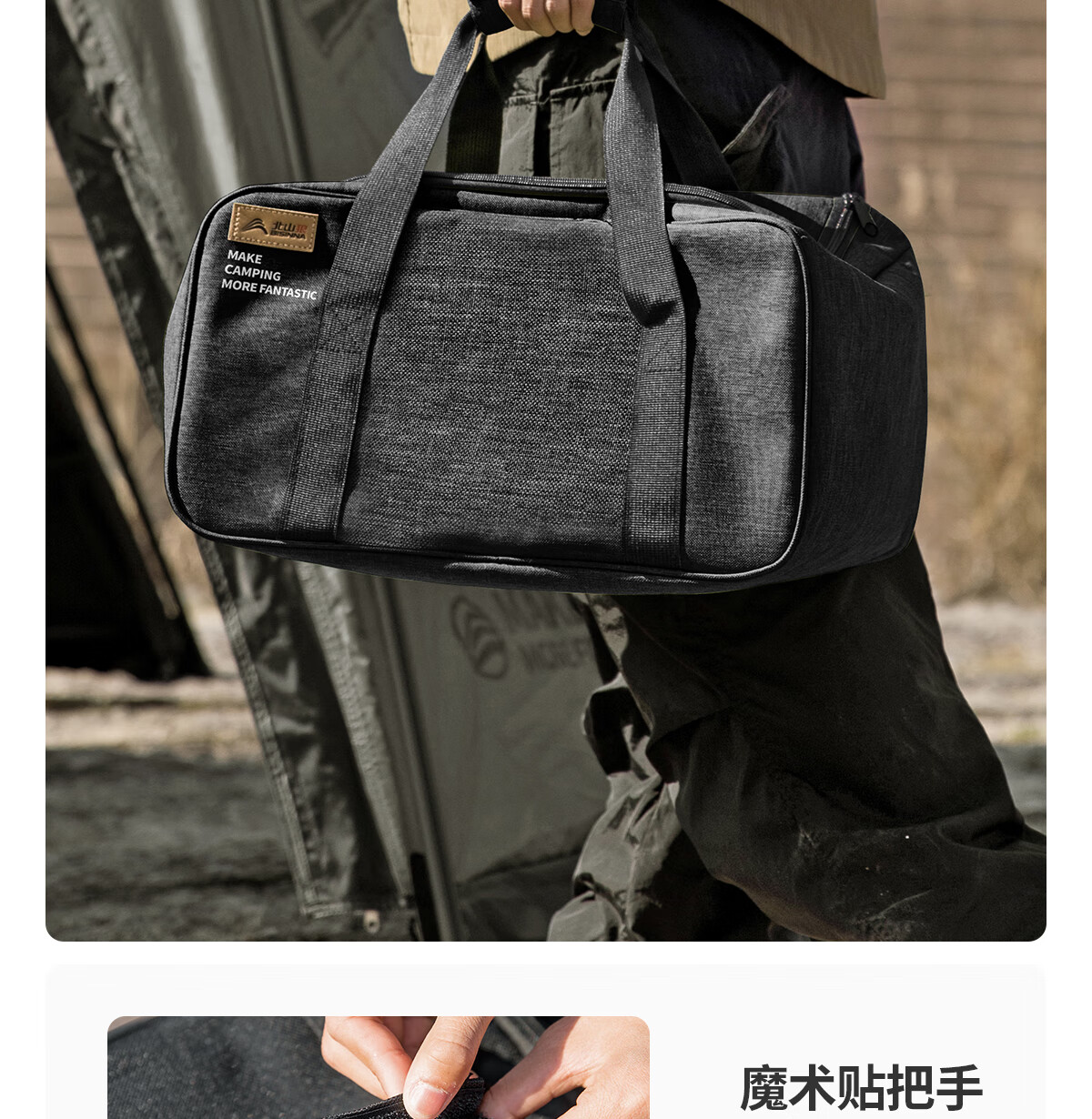 北山狼户外露营收纳包多功能便携式餐具套锅野餐包大容量手提包 复古黑【自带隔层】