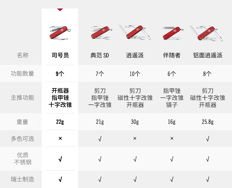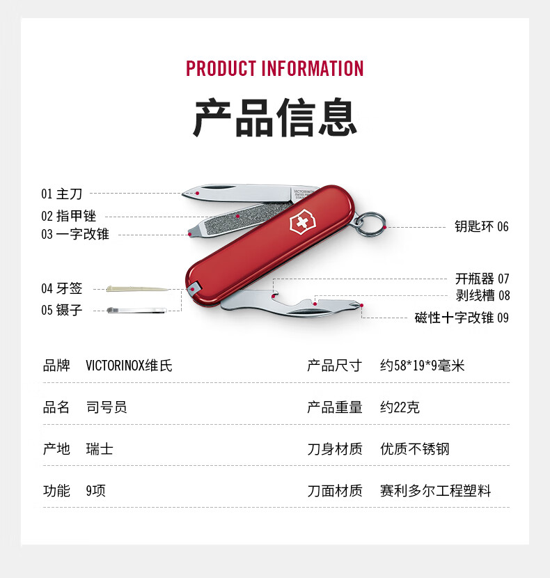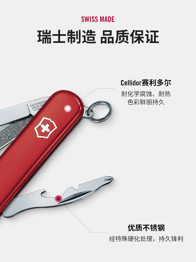 维氏(VICTORINOX)瑞士司号员58mm迷你EDC折叠便携户外工具多功能防身 红色 0.6163