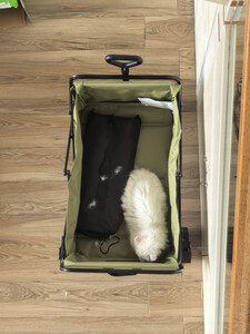 小车质量很好,轮胎够大,以后出去玩装东西方便了,看来还得配一个桌板。