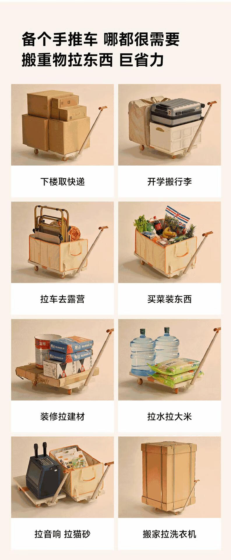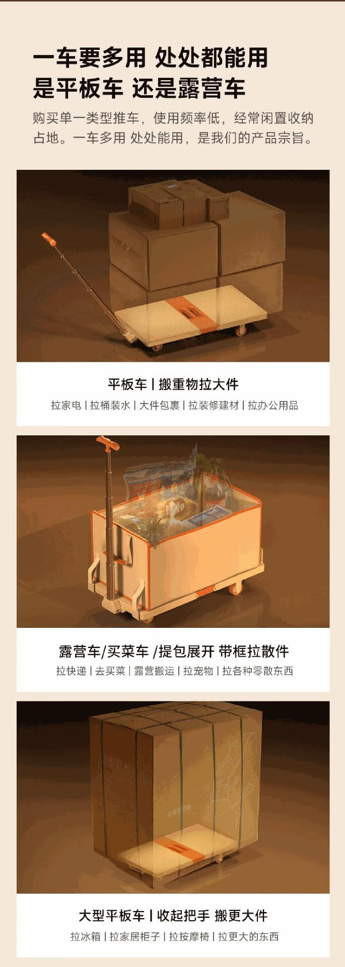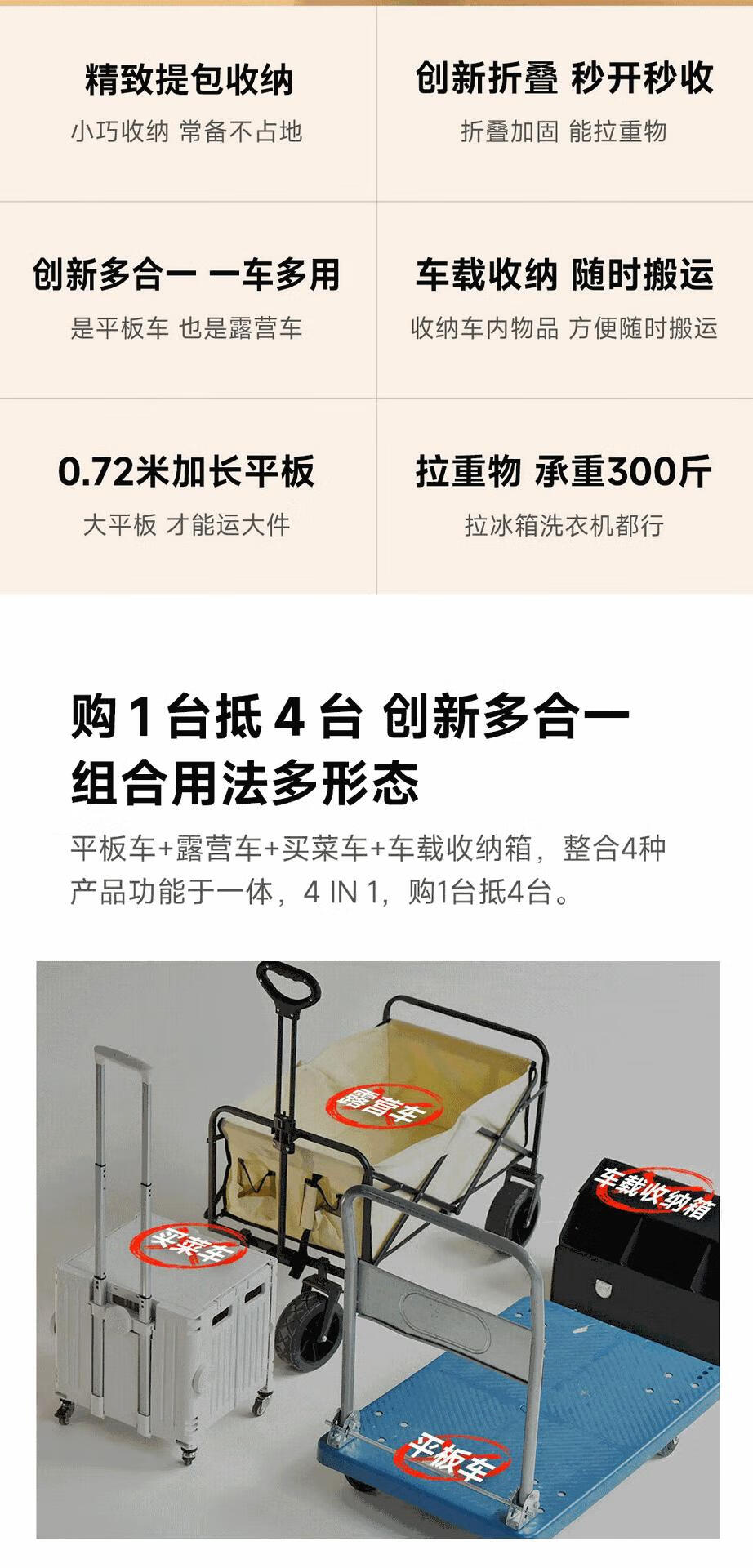 户外摆摊小推车 可折叠夜市集市地摊小车户外露营车拉货多功能小 卡其色8寸越野轮+米黄色折叠桌
