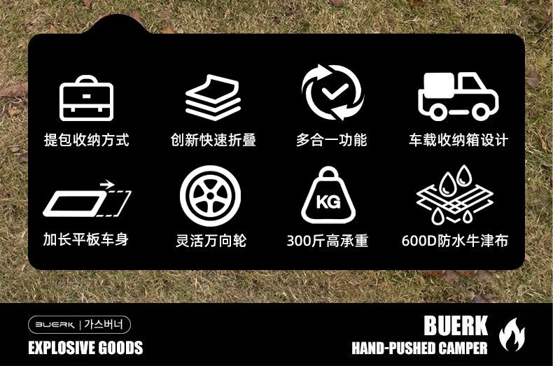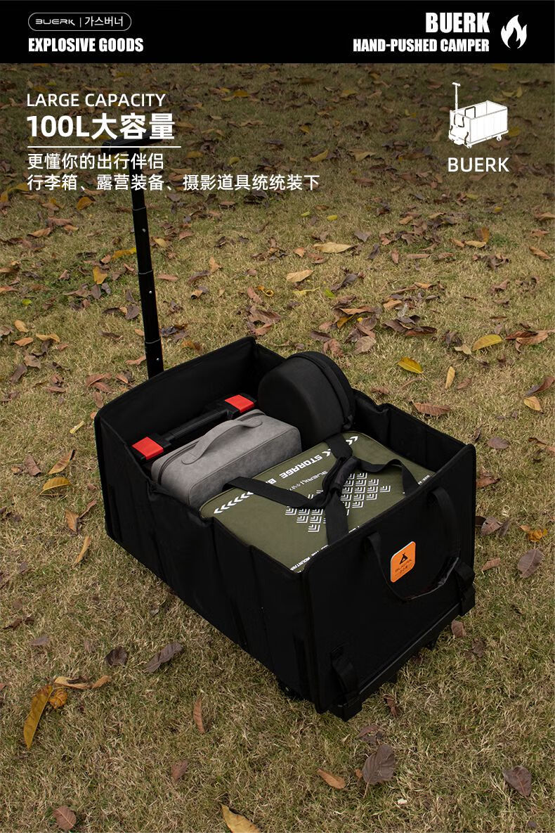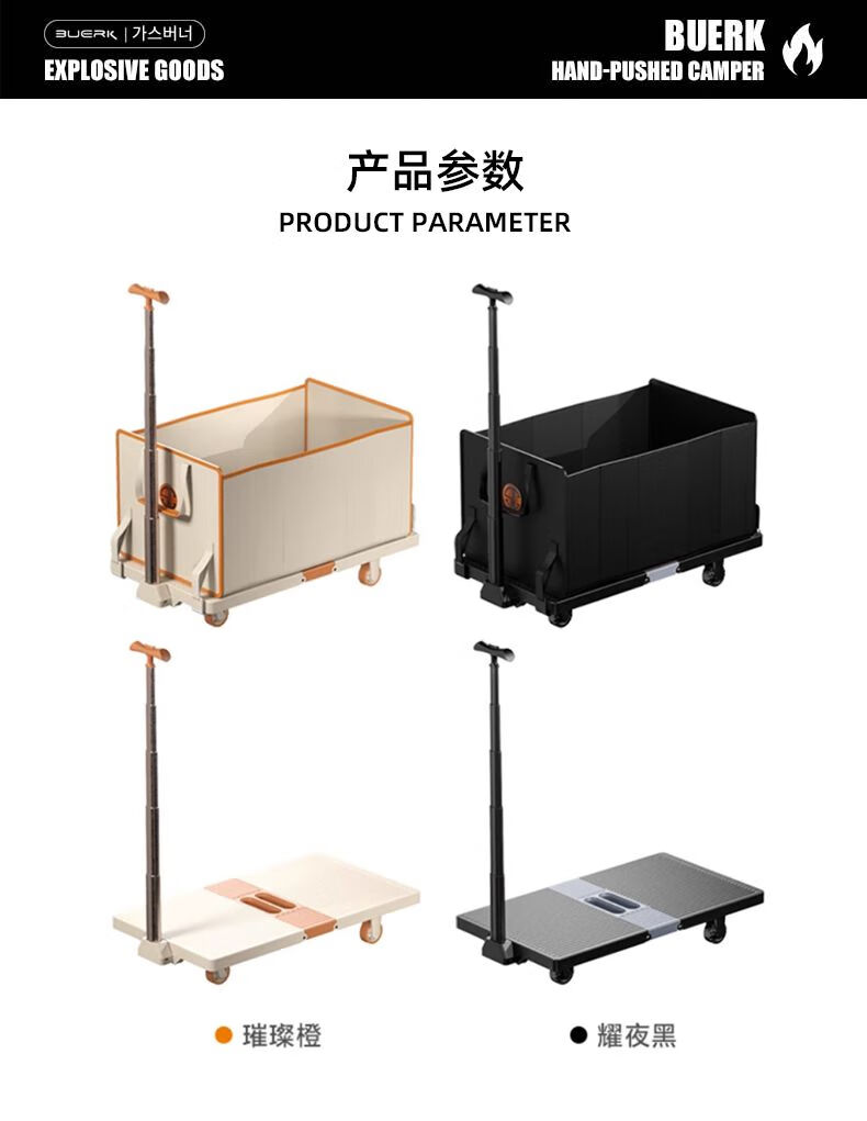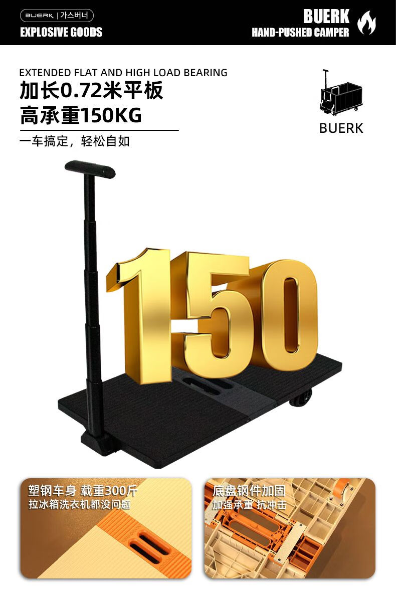 布比克(BUERK)可折叠户外野餐露营家用推车收纳便携露营手拉拖车小推车摆摊桌板 手推车质感黑