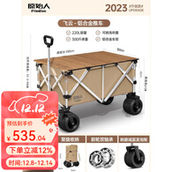 原始人(The Primitive)露营推车户外营地车铝合金野营可折叠野餐遛娃小拖车桌板手拉杆车 220L 卡其棕推车+铝合金木纹桌板