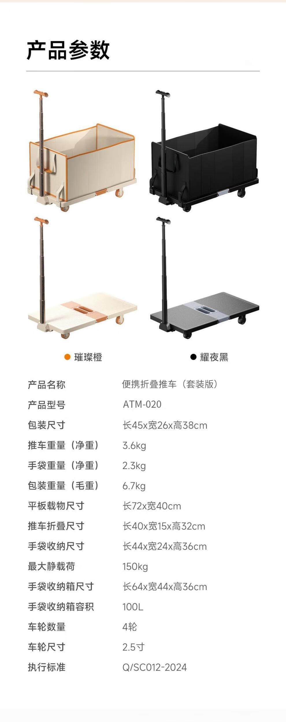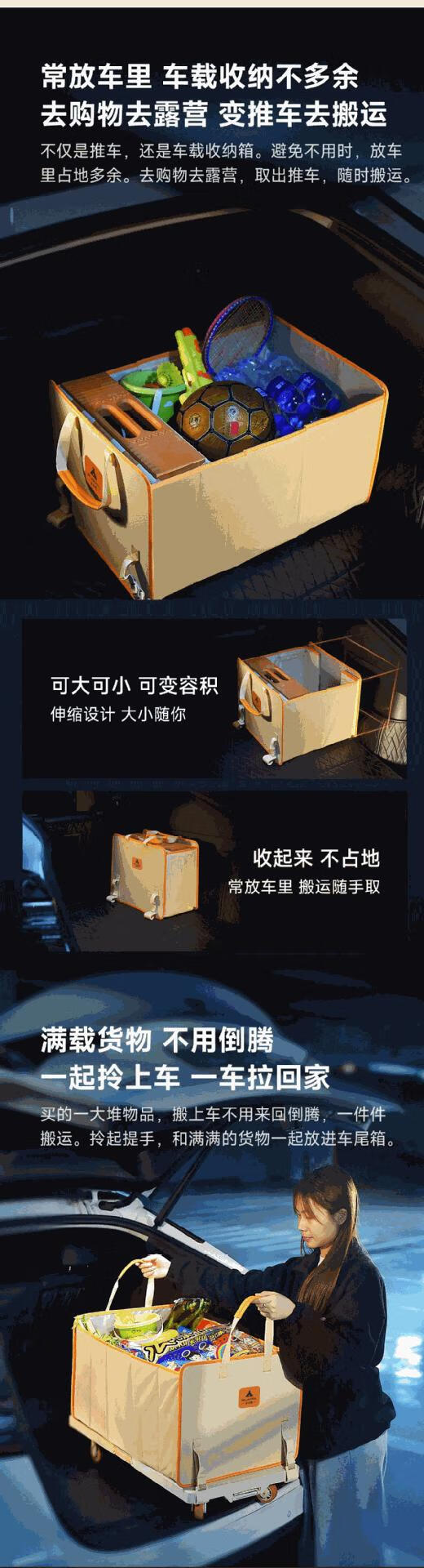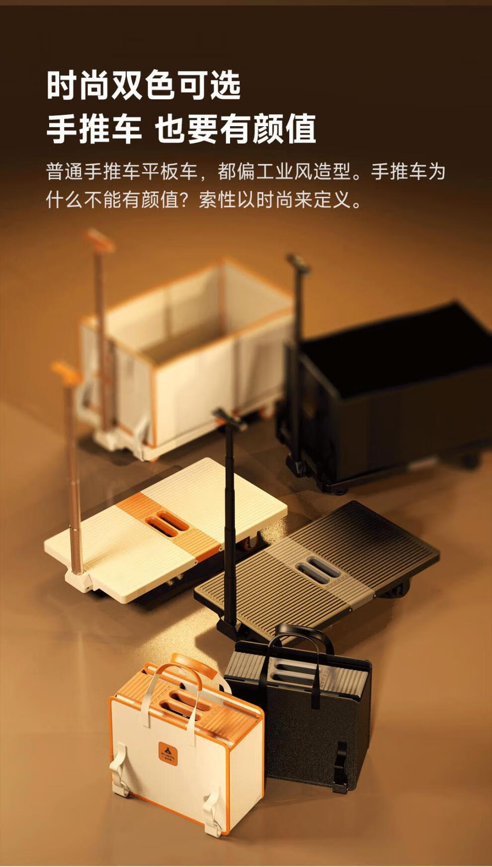 天与云手袋推车便携超轻折叠露营车营地拖车户外野餐野营小拉车儿童可躺 100L 耀夜黑