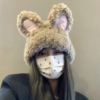 仰朋可爱猫耳朵滑雪头盔罩帽子毛绒保暖加厚防寒套头帽滑雪装饰品配饰 兔耳朵毛线帽卡其 M