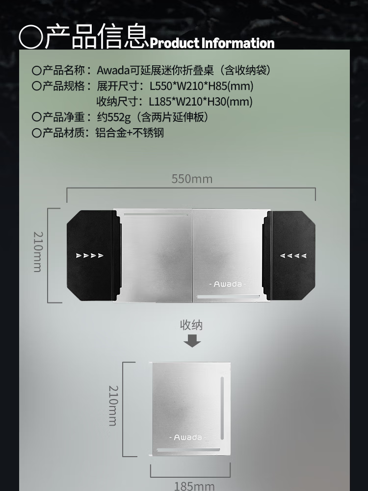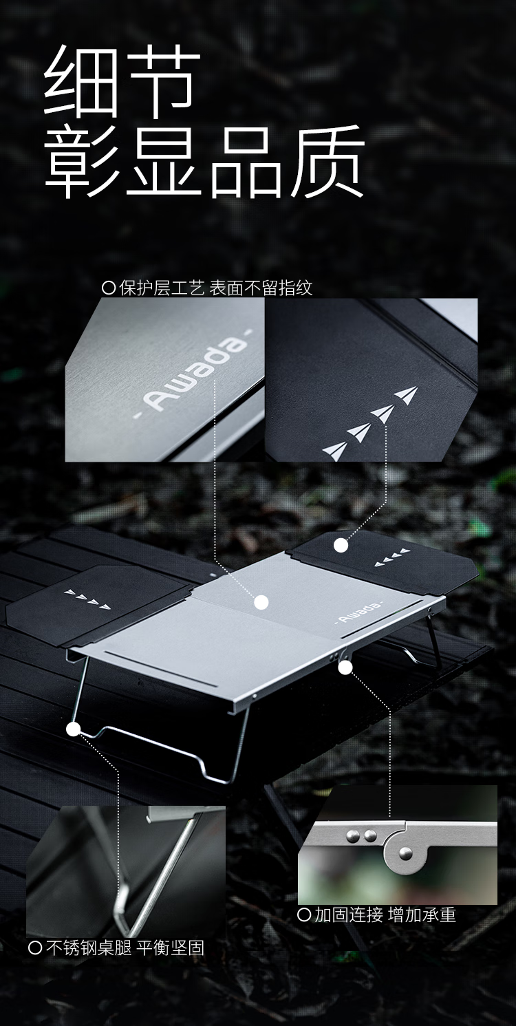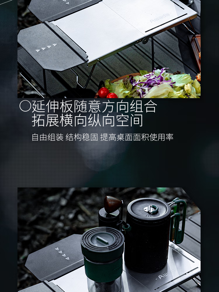 Awada户外多功能迷你桌可延展拓展桌野外露营便携折叠桌铝合金桌