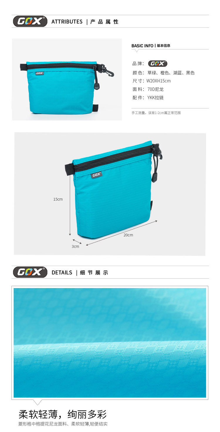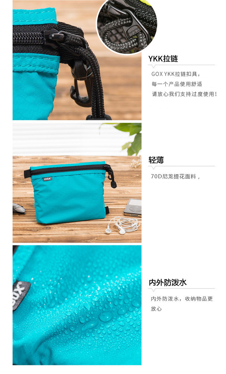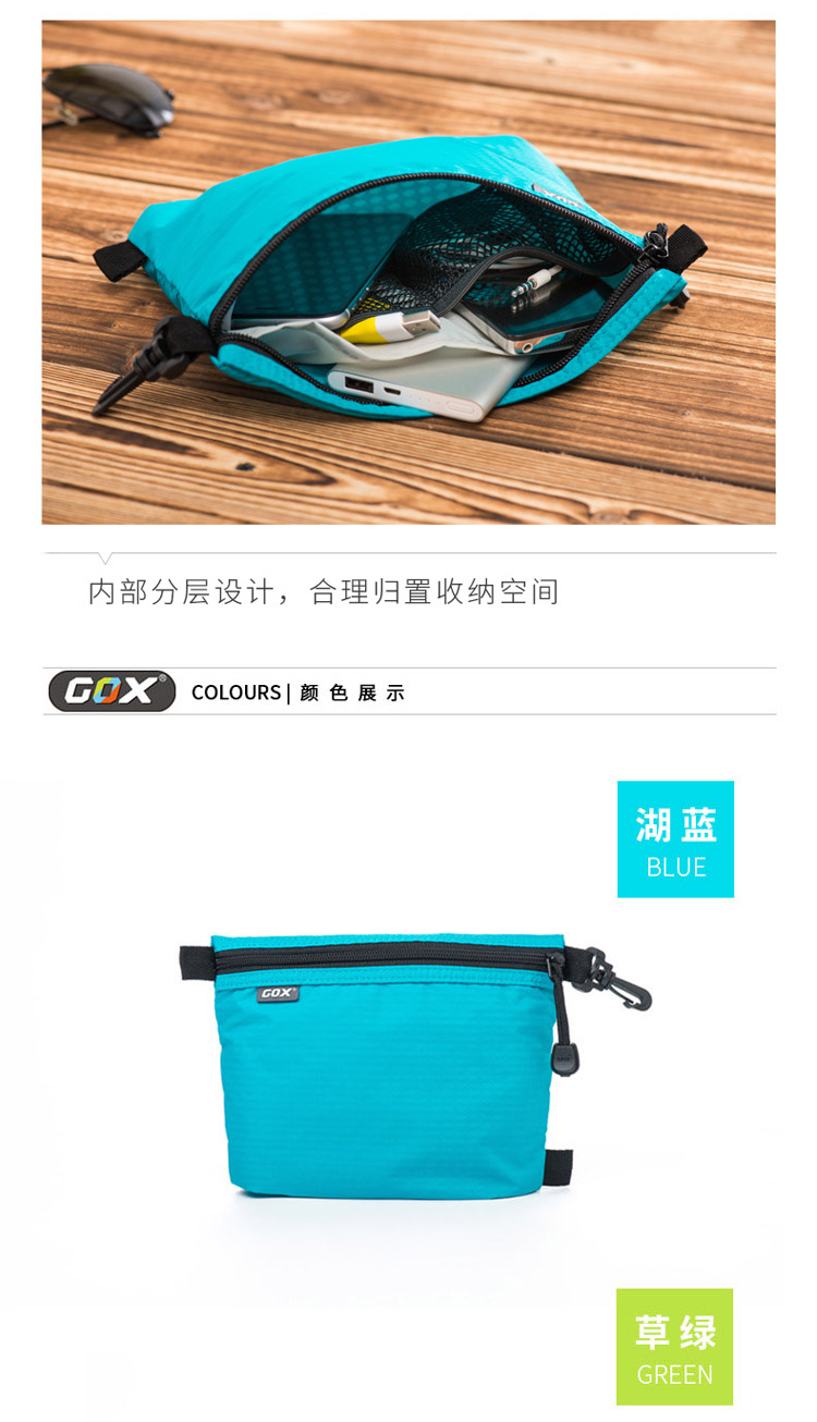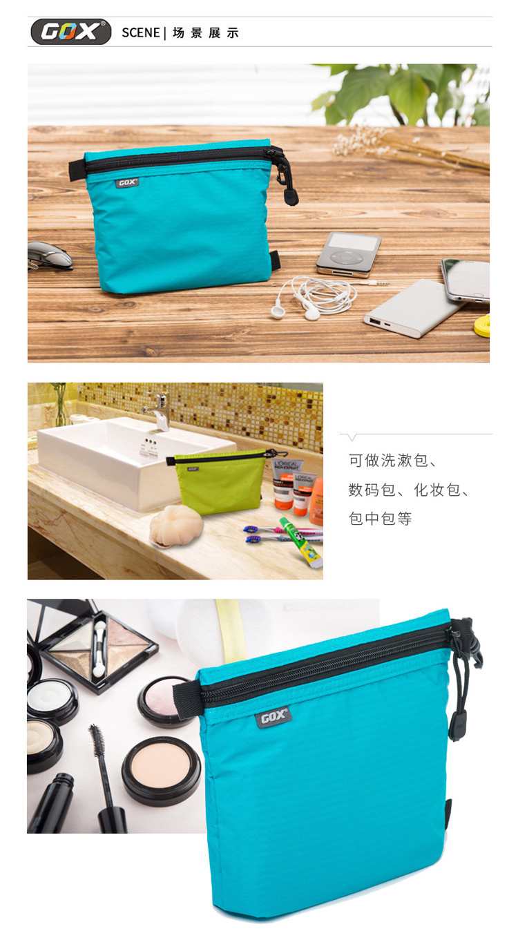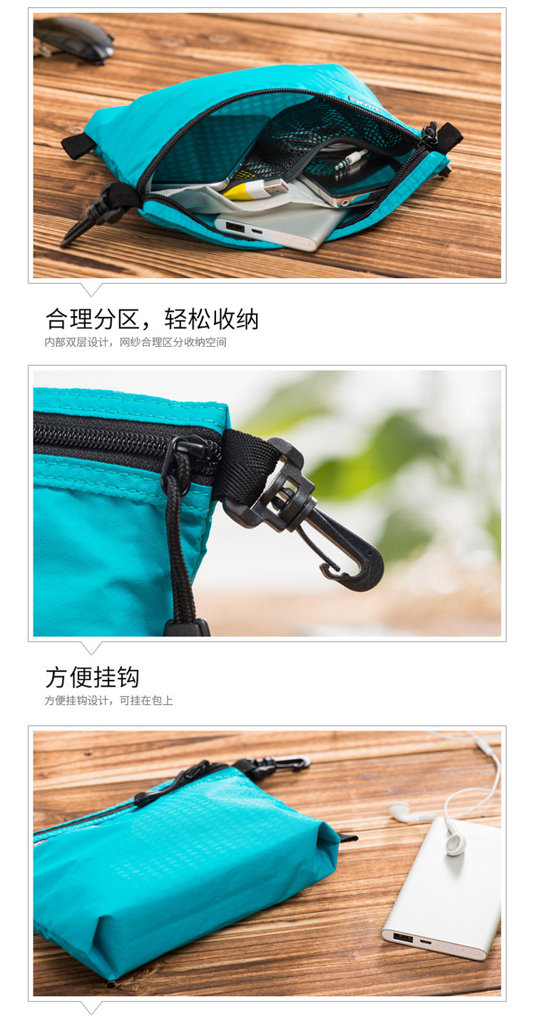 很轻便,放在包里不占地方,里面有四个分格,能很好的收纳数据线和充电器,充电宝等。颜色亮丽,性价比超高,适合驴友伙伴们,推荐。