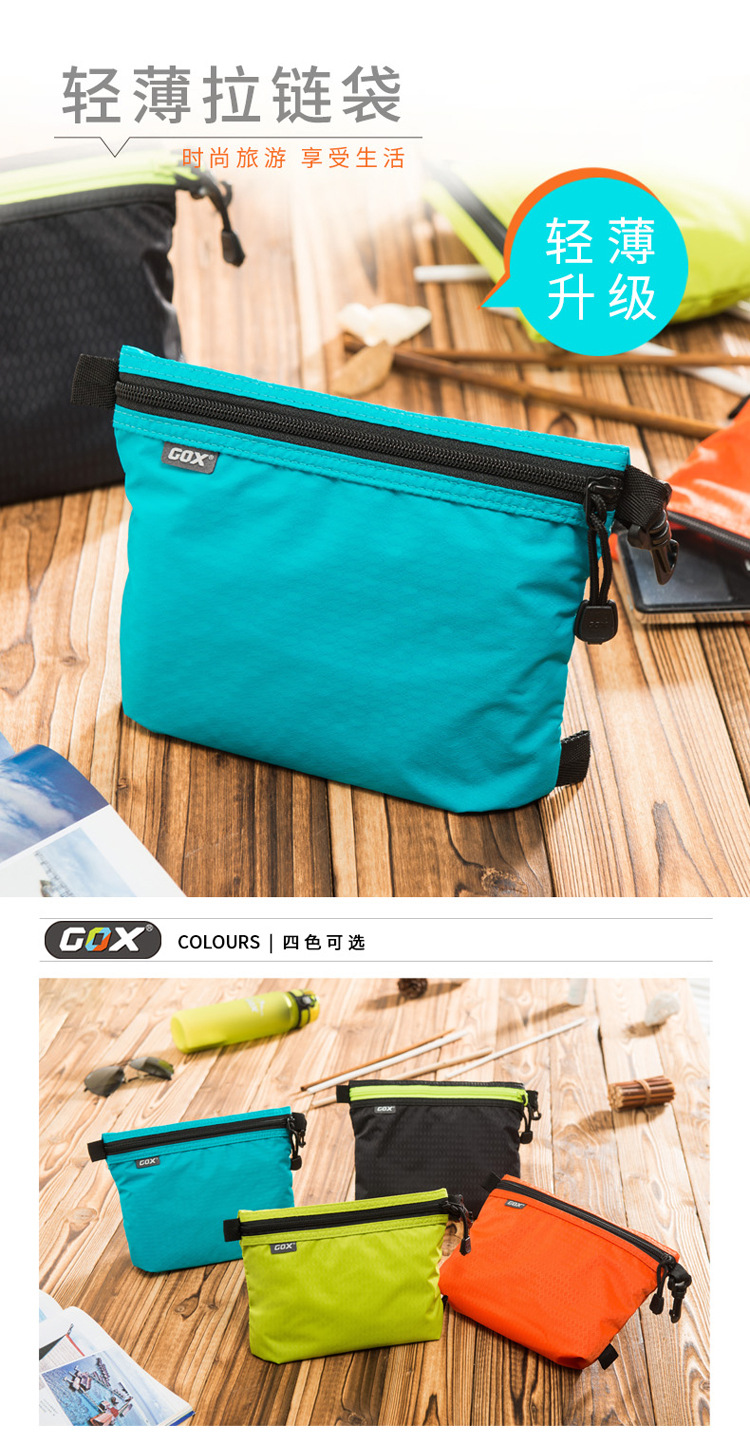 GOX数码收纳包休闲户外防泼水尼龙拉链袋带网格手机数码包分层洗漱包 橙色拉链袋