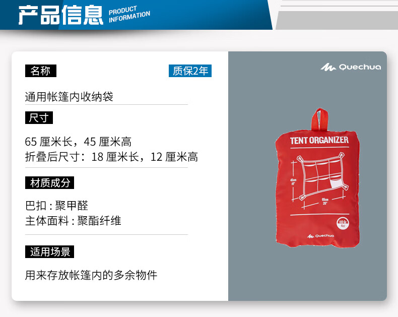 迪卡侬收纳袋帐篷内户外露营简便大承重通用便携可折叠储物 ODCT 蓝色