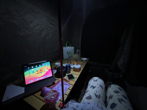 帐篷太美了,还有灯带,氛围感超级高,布料也非常好,厚实,内外两层帐布,五金件也超级好,搭建也很容易,收纳也不难,等天气暖和点就可以带着孩子们出去露营了。