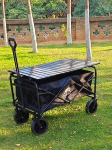 云伴户外露营折叠便携小推车野餐摆摊可折叠手推营地拖车拉杆桌板车 越野8寸黑色-双刹17cm万向轮