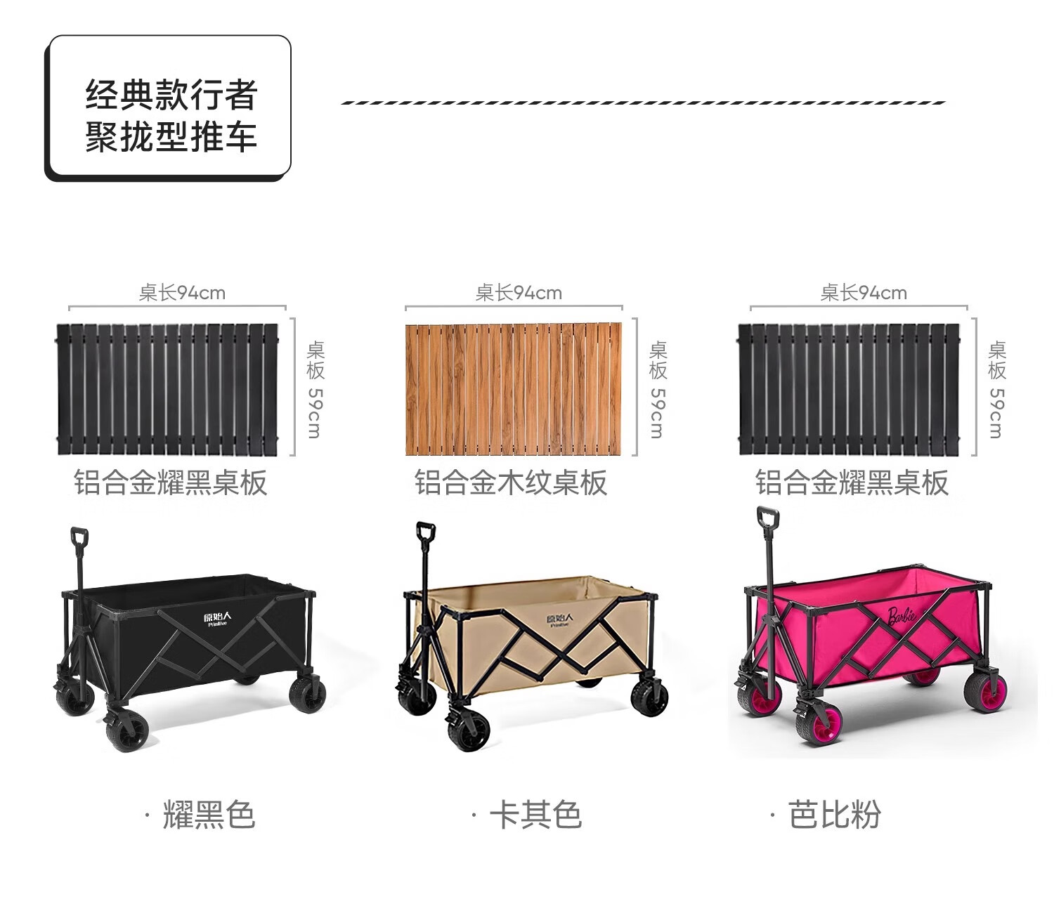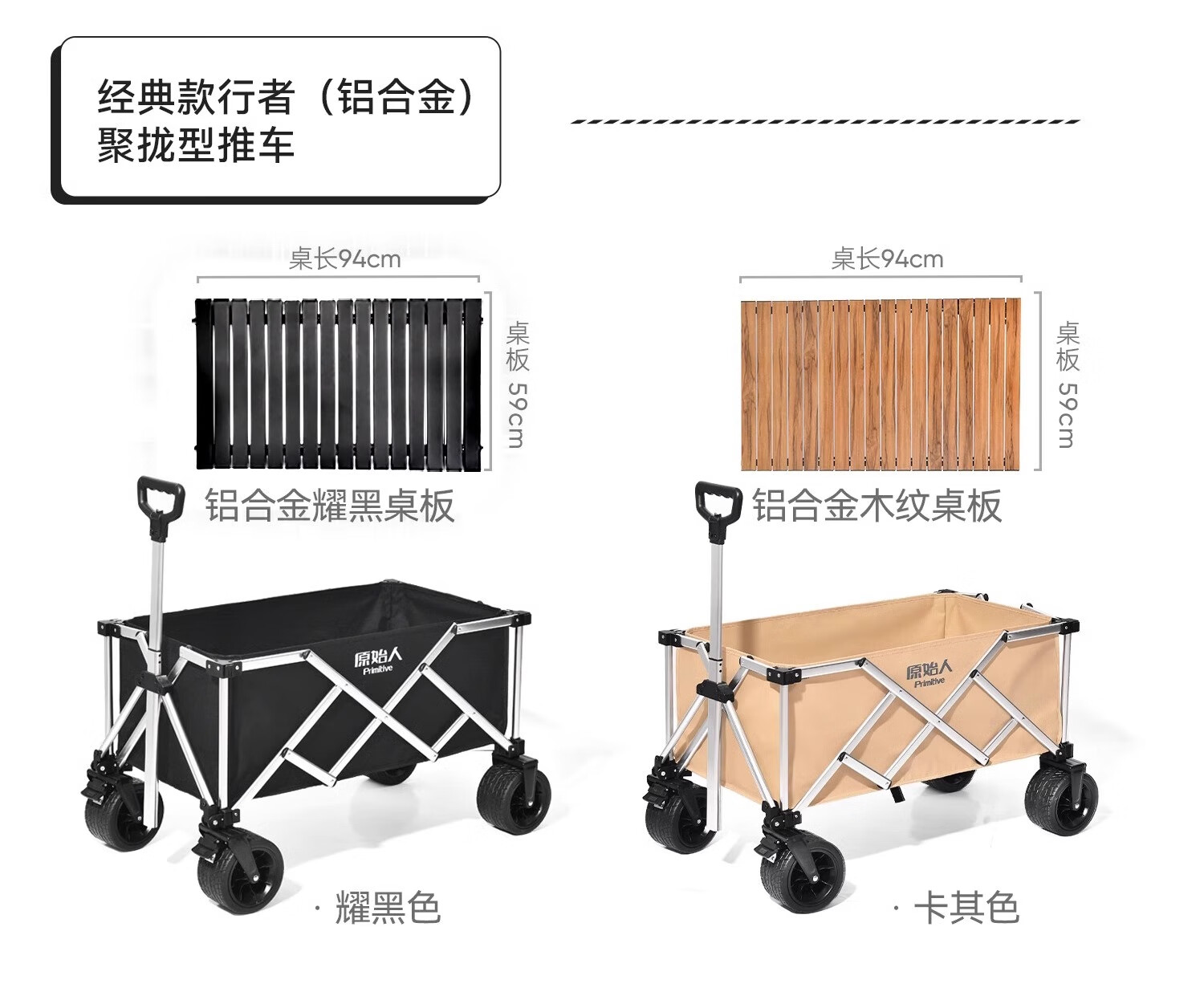 原始人露营推车户外便携折叠小拖车野营野餐营地儿童可躺遛娃摆摊快递 175L 桌板套餐-曜黑+铝合金桌板