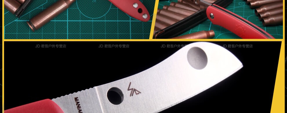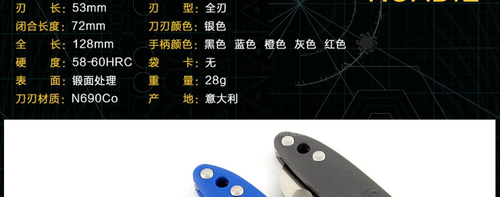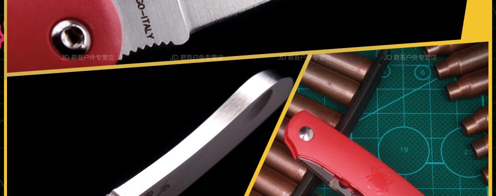 这一把型号偏小,大小和85mm瑞士刀差不多,厚度厚很多,意大利特种钢防锈比较好,可以在海水轻度使用,适合海边edc,而且无锁定,刀头也大于60