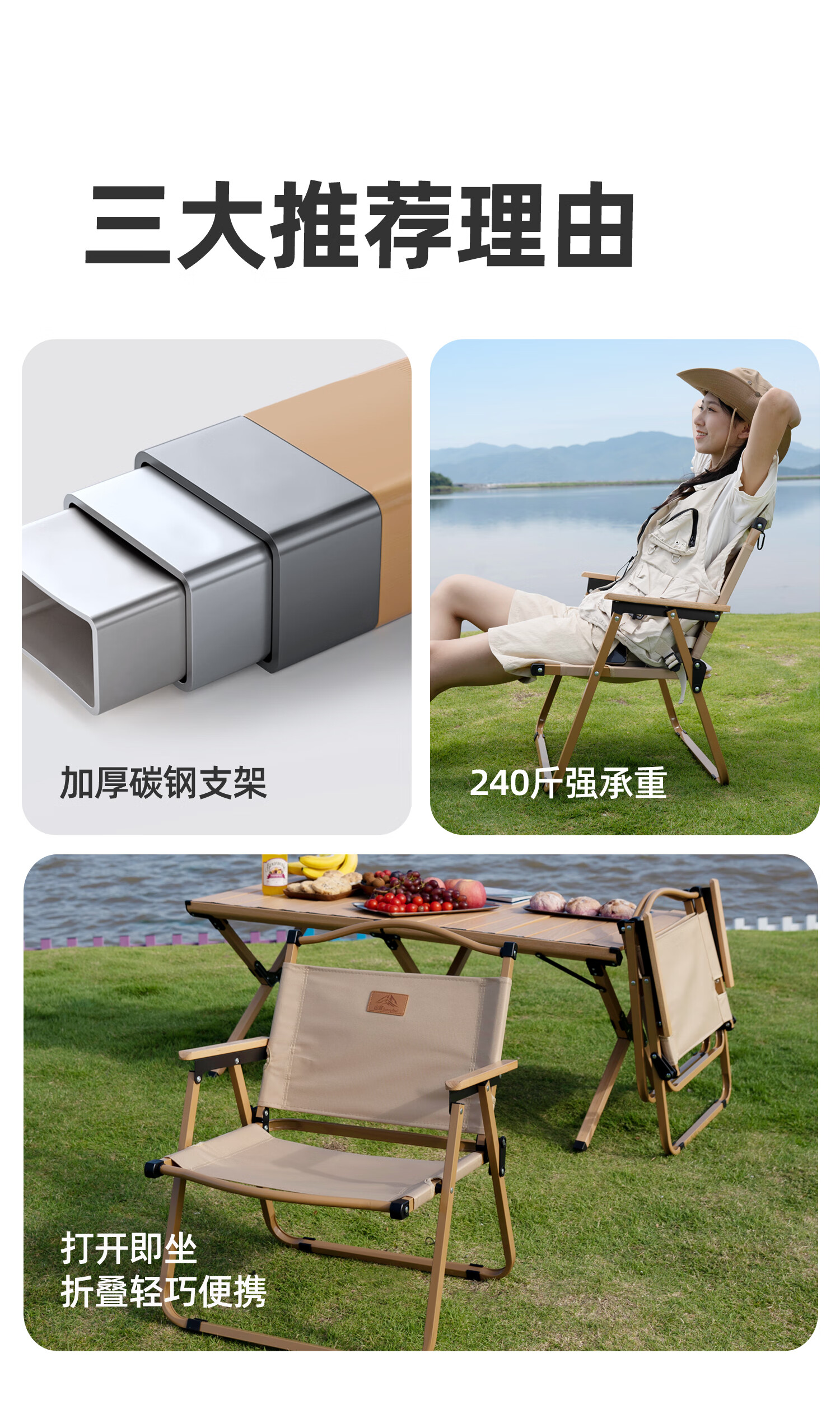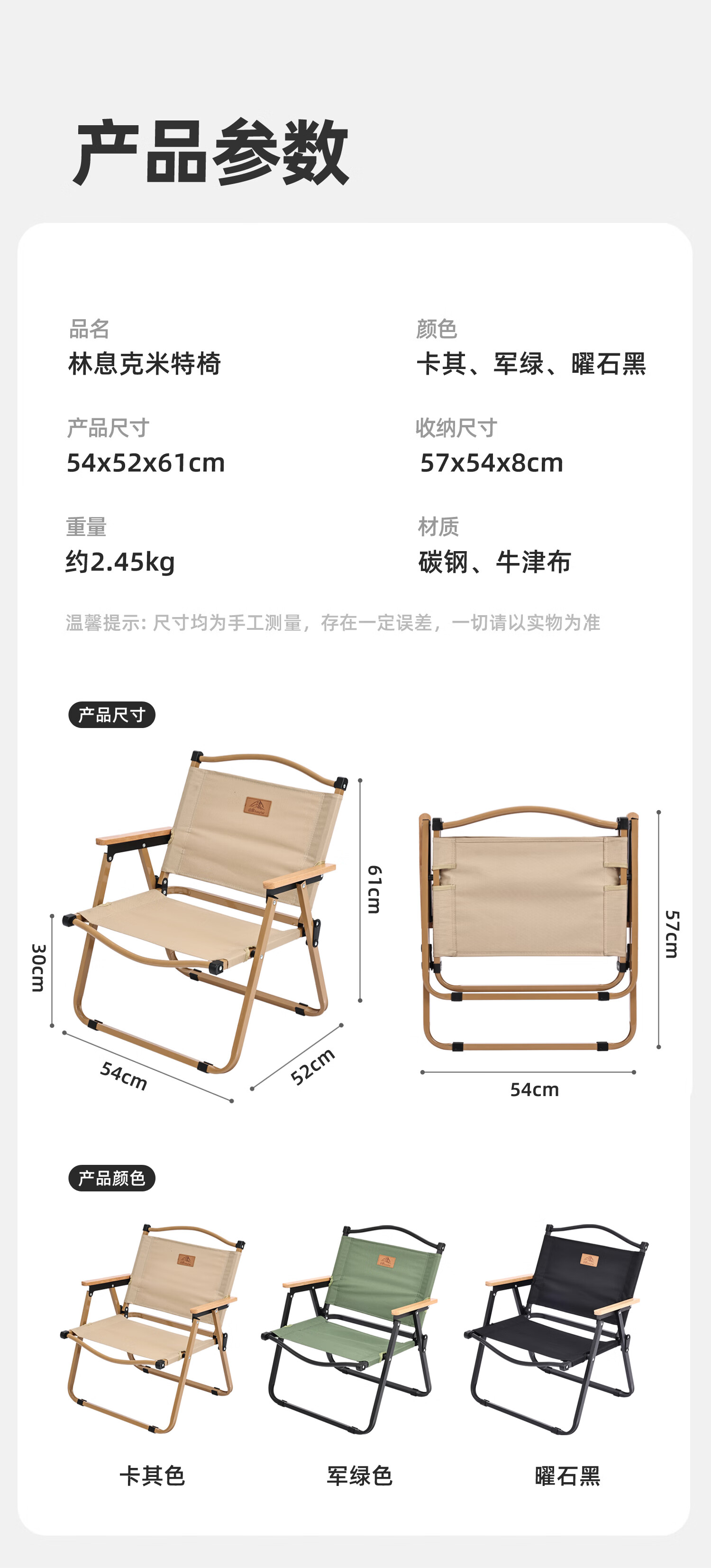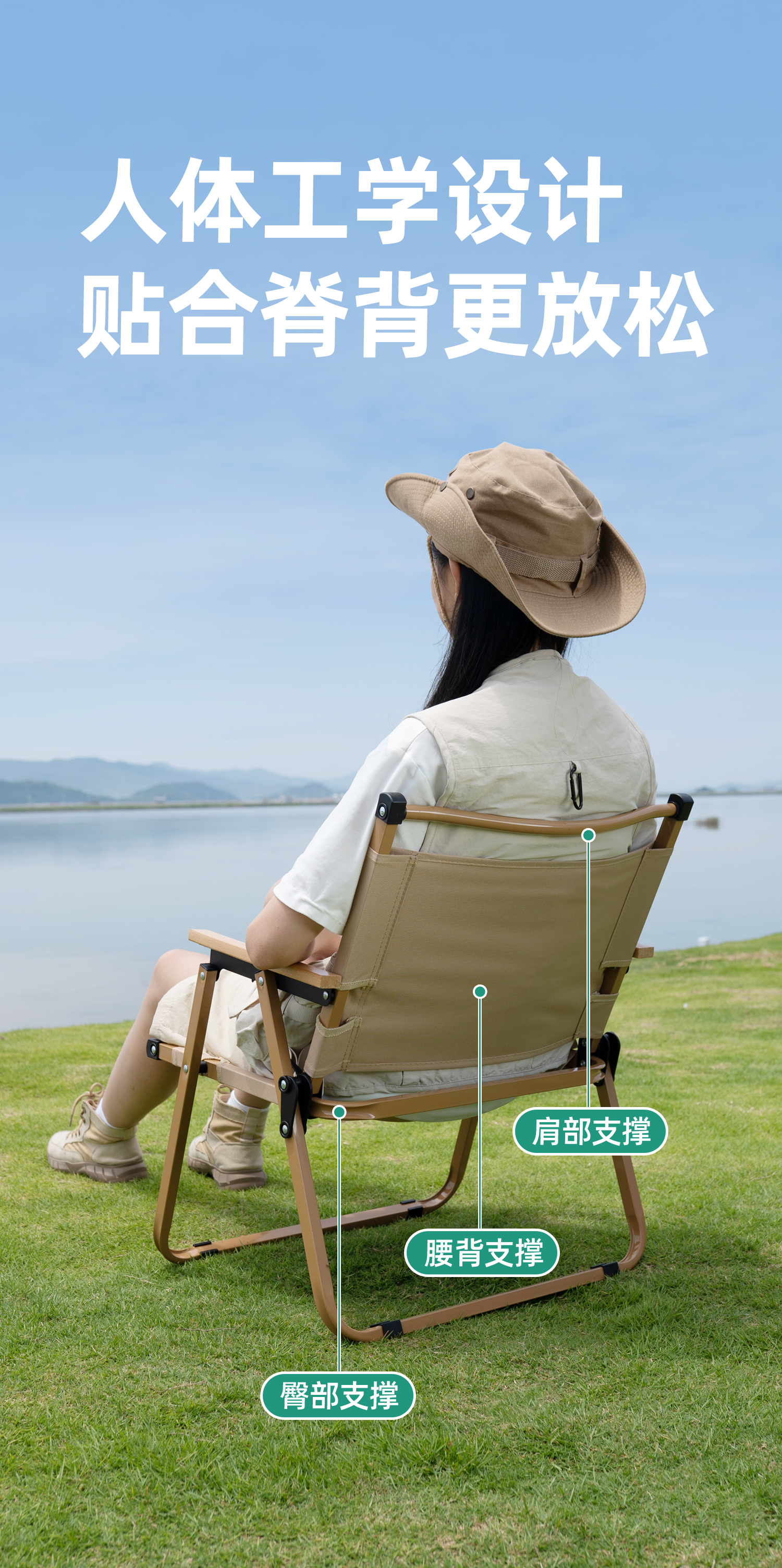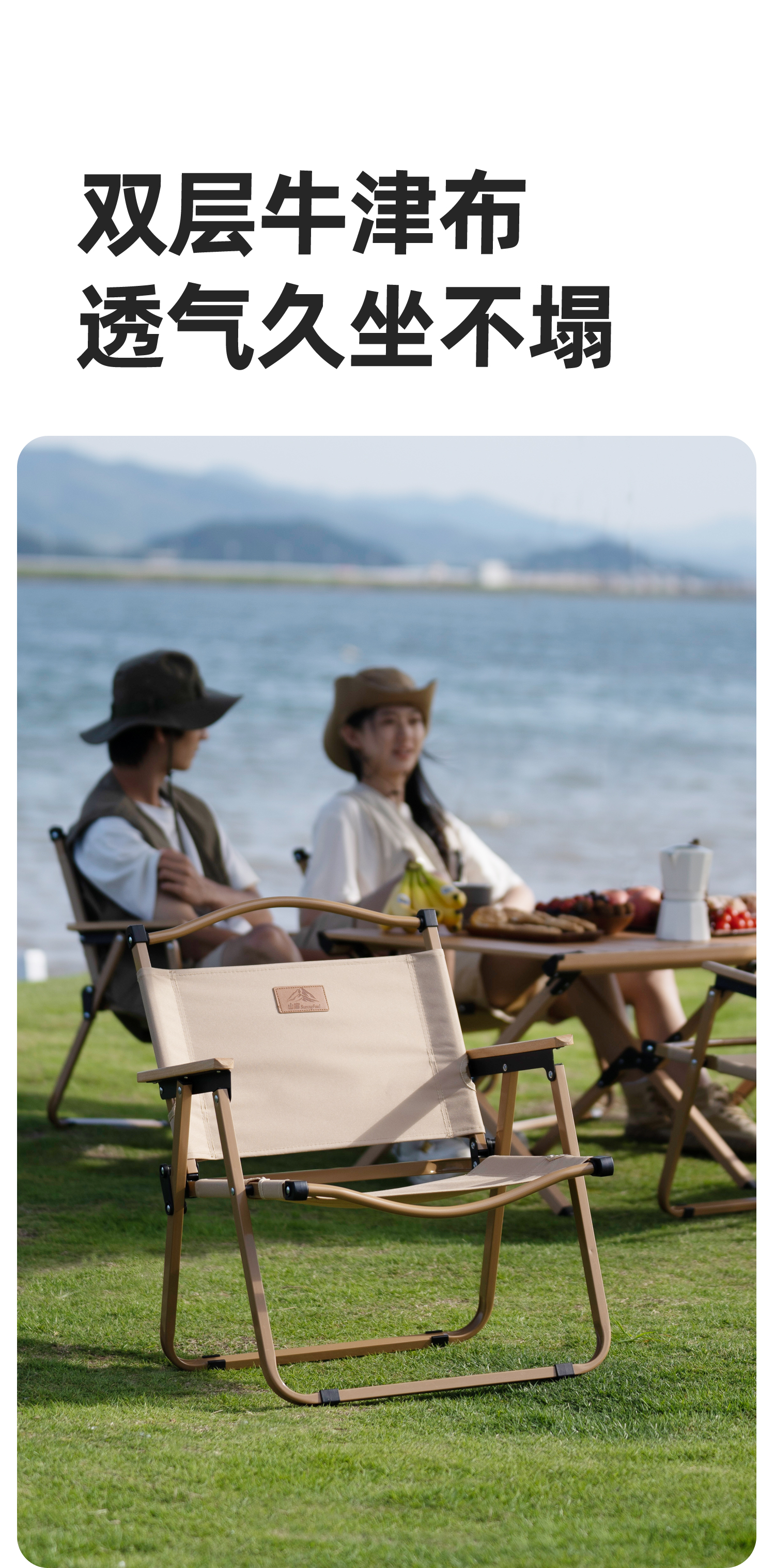 山扉林息克米特椅户外折叠椅超轻便携高承重沙滩碳钢钓鱼凳野餐椅卡其 卡其色【400斤承重/双层牛津布】林息·克米特椅