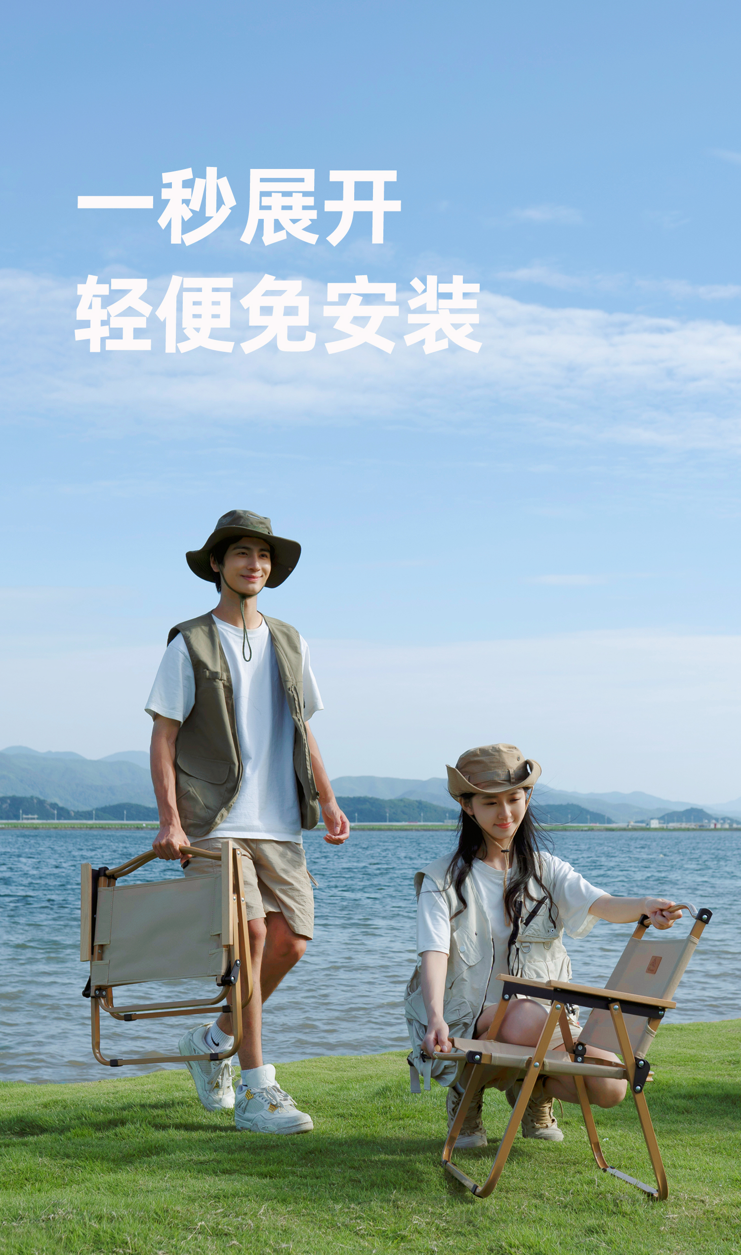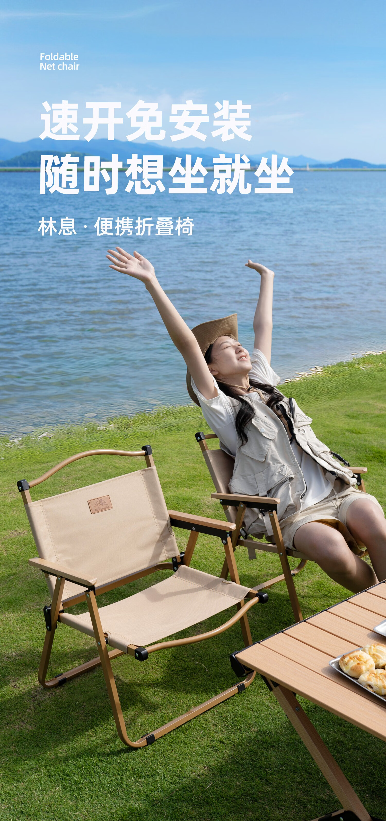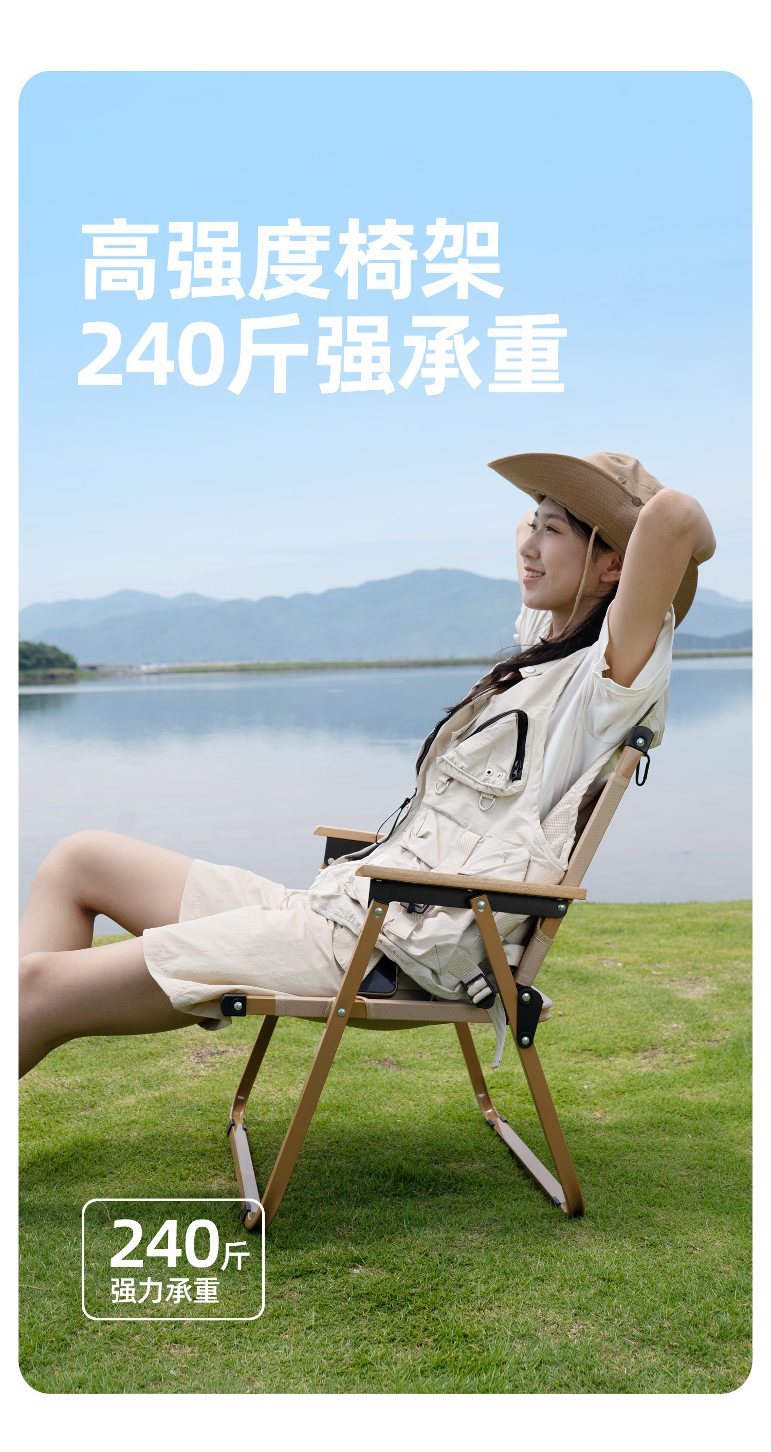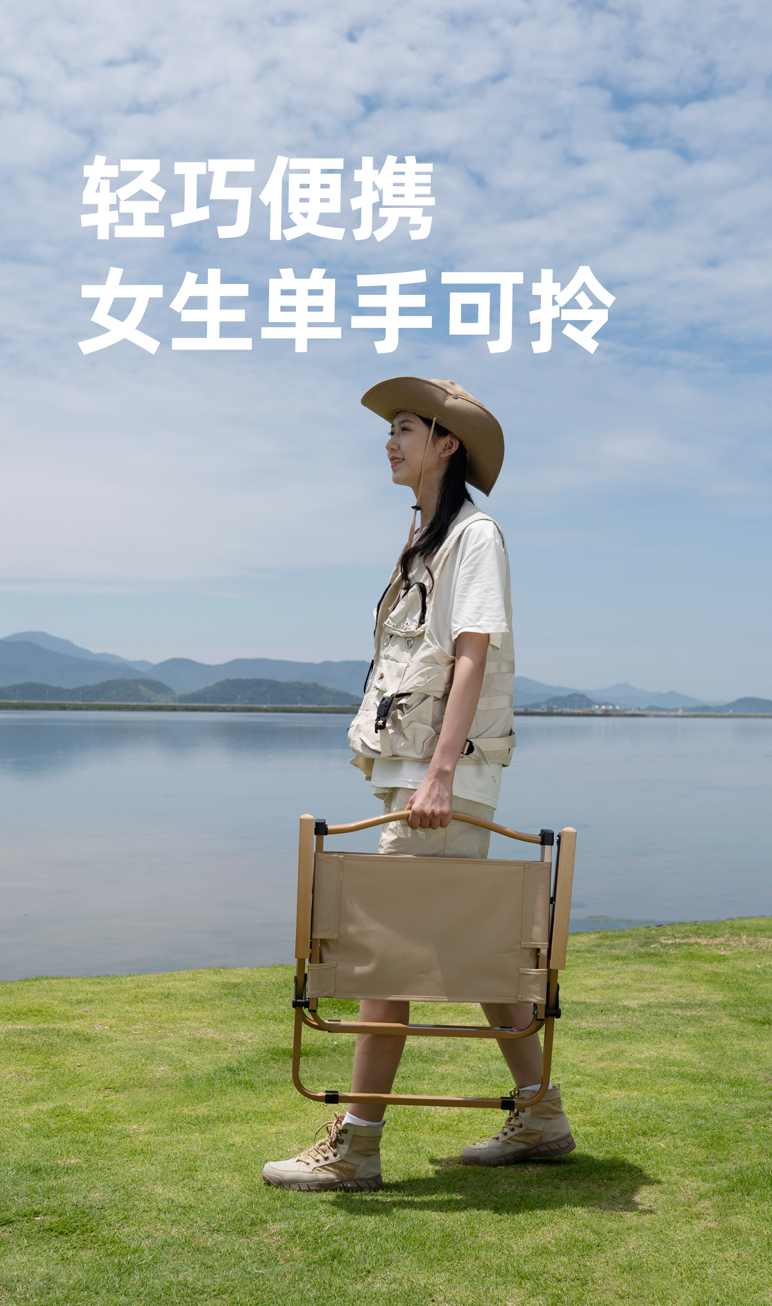 山扉林息克米特椅户外折叠椅超轻便携高承重沙滩碳钢钓鱼凳野餐椅卡其 卡其色【400斤承重/双层牛津布】林息·克米特椅