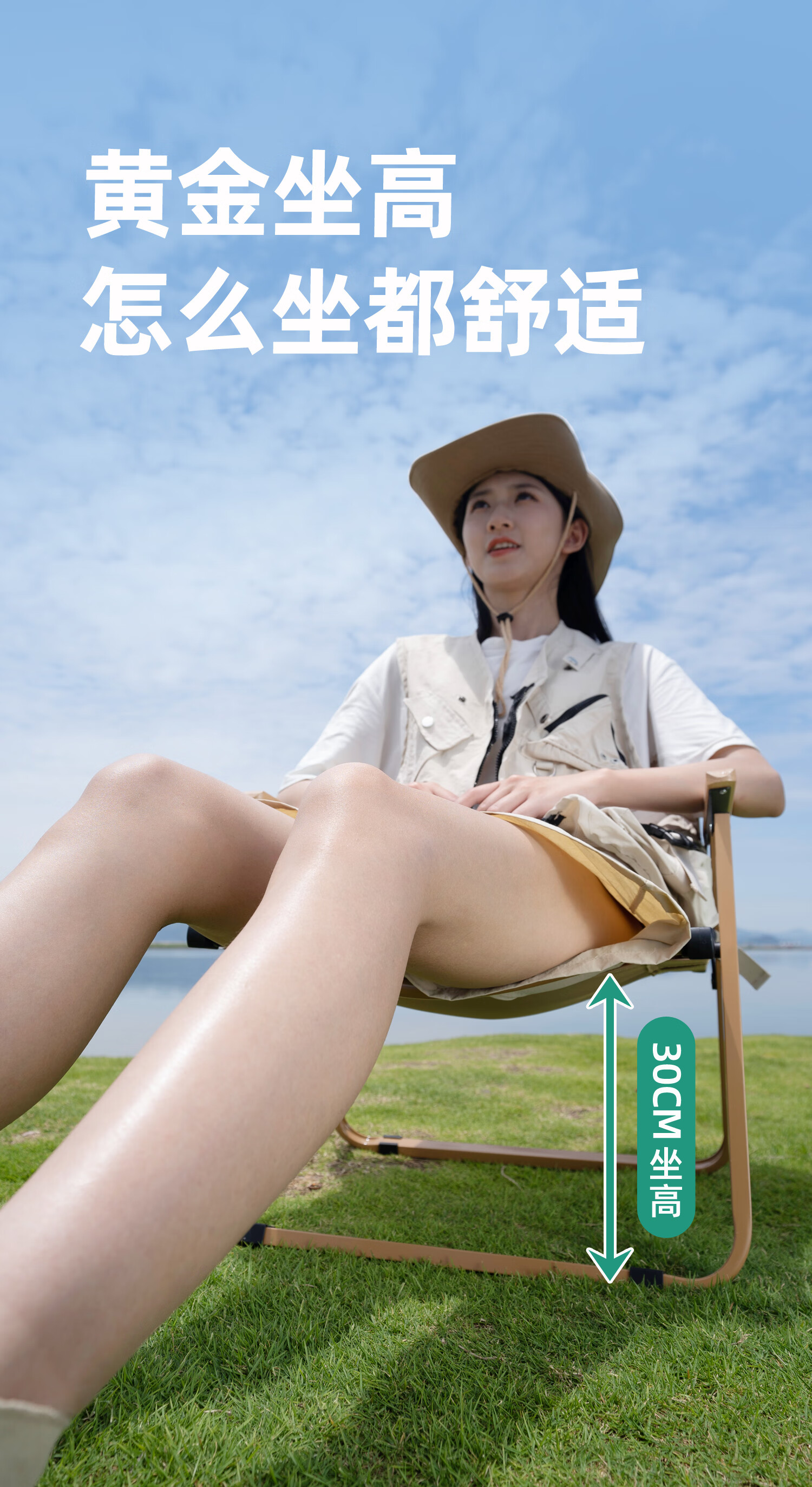 山扉清石克米特椅户外折叠椅加宽加高超轻便携高承重沙滩钓鱼凳野餐椅 清石克米特椅 卡其色