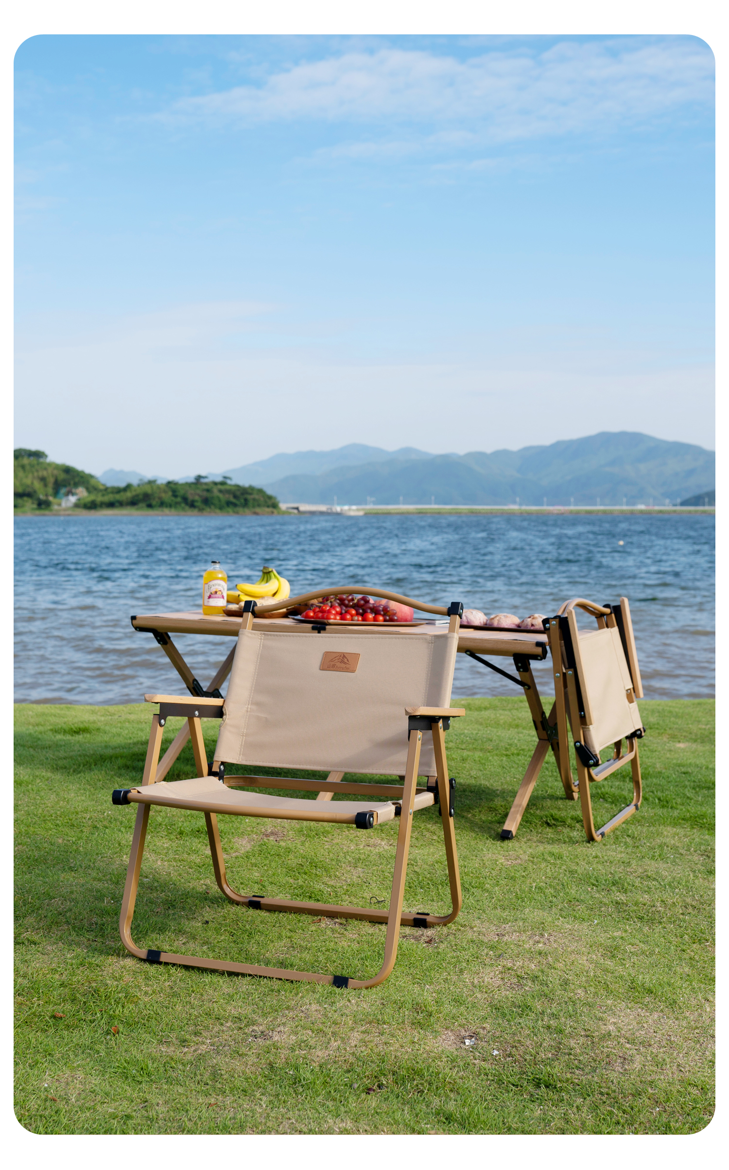 山扉山扉滑轨铝合金蛋卷桌便携式露营装备野餐野营桌套装户外折叠桌椅 木纹款·军绿色【木纹加粗铝合金】克米特椅